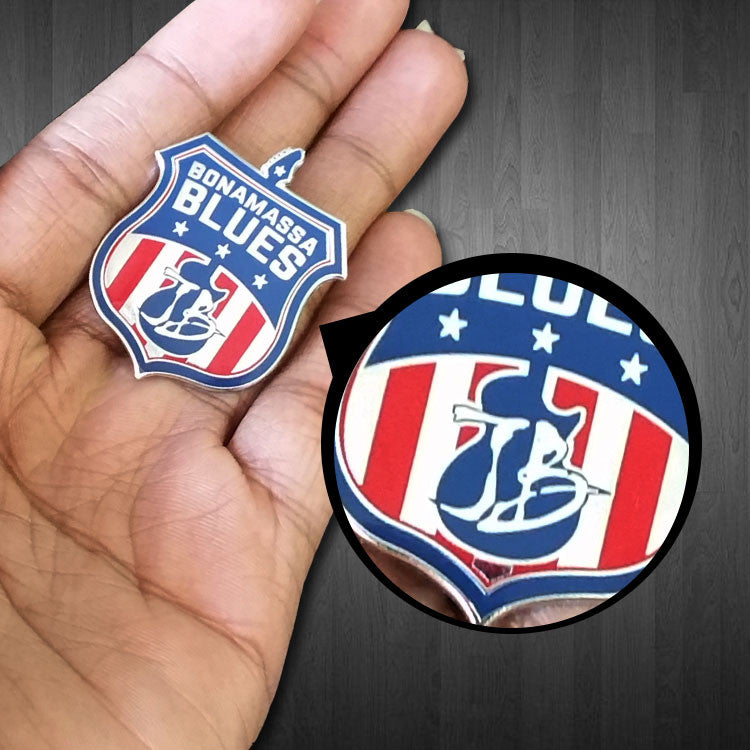 The connection between Joe and blues music runs deep, real deep, and the blues is a true American art form. This awesome, cutting edge pin celebrates that deep connection between Joe, the blues, and America. Like both America and the blues, the pin is tough, fiercely durable, and stands for freedom of expression. Wear it proudly. Wear it often. It’s Bonamassa Blues.