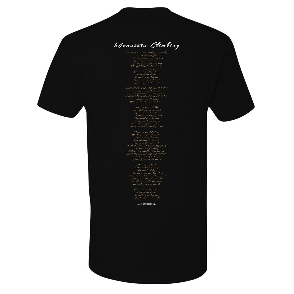 This t-shirt design gets its inspiration from the Joe Bonamassa song “Mountain Climbing” which is a song about dealing with hard times, challenges and obstacles that can drag you down to a place called blues of desperation. Since you can’t avoid obstacles, wear this t-shirt to remind you to face these everyday struggles head on with perseverance and strength. With each step, you’ll get to the top of that mountain and leave your blues to where the valley runs low.