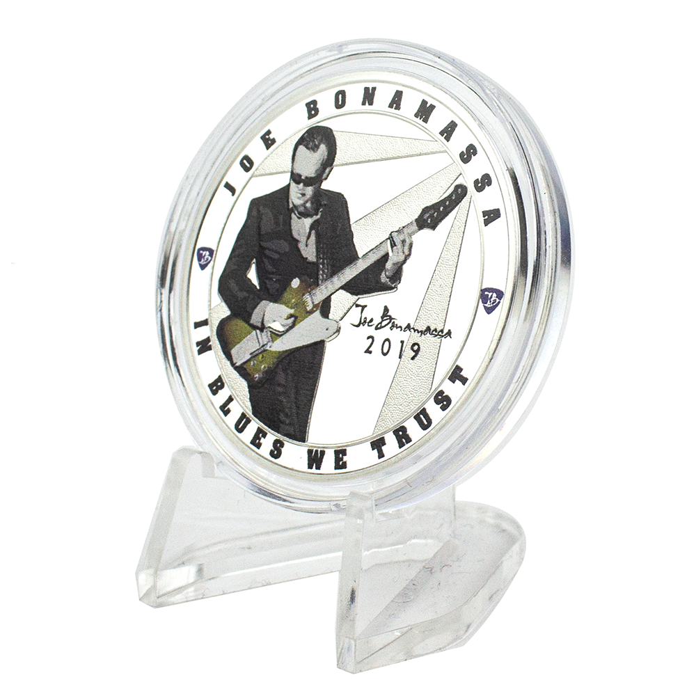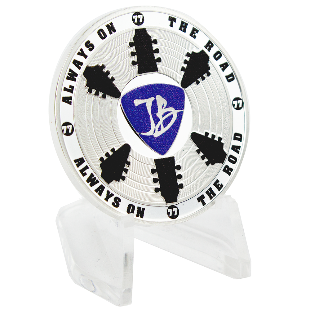 For the collector's in your life, we have the perfect gift for them! A beautiful limited edition 2019 JB Fine Silver Coin. The front of it features the blues rock titan shredding his mighty firebird guitar in the spotlight with the words "In Blues We Trust!" Etched on the back, is a JB pick surrounded by guitar headstocks with the words “Always On The Road”. Each coin is sequentially numbered, includes an easel for proper display and a clear protective capsule.