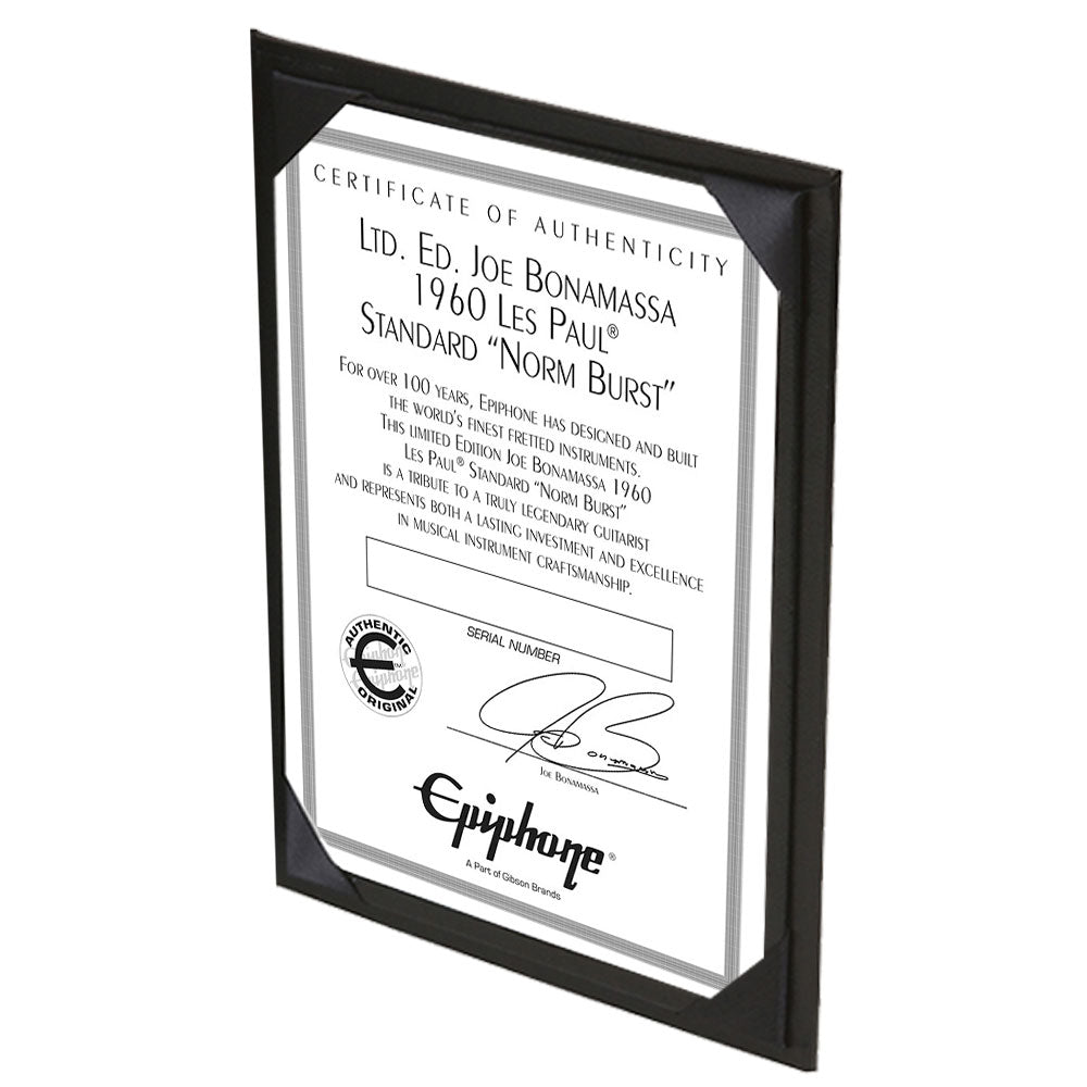 The limited-edition Epiphone Joe Bonamassa 1960 Les Paul Standard “Norm Burst” has a classic Mahogany body with a Norm Burst finish, and a AA Maple Cap with a Flame Veneer top, directly modeled from Joe’s 1960 original. The Epiphone “Norm Burst” is powered by Epiphone ProBuckerTM pickups crafted with the same materials as Gibson BurstBuckers. The tone controls feature MalloryTM tone caps and 50s style wiring. A “Lifton” style case and a Certificate of Authenticity are also included.