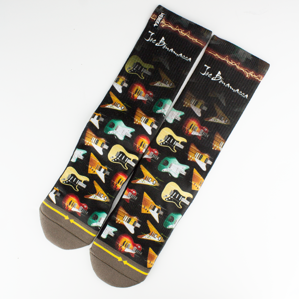 When it comes to cool rock star styling, you want to look for quality, comfortable fit and some extra plush and cushion in all the right places. Electric Guitars Crew Socks by Merge4 has got you covered with 4 new colors! They also make great gifts for the guitar enthusiast in your life! Angus Young would wear these with his schoolboy-uniform!