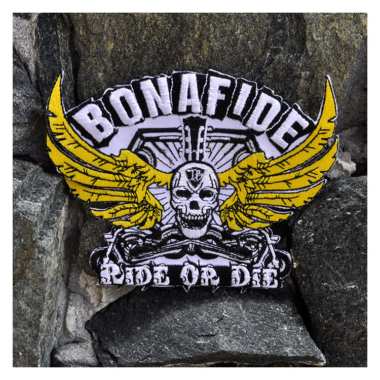 We know you are a bonafide Joe Bonamassa fan. Besides digging Joe, many of our fans don’t ride in cages but they ride hard....or die! So, rip off an old yeller patch and stick this one on yer rider jacket. This bad-ass biker design features a skull with the JB logo on its forehead and wide yellow wings sitting atop a pair of badass motorcycles and says, “bonafide ride or die.” We wear the patch because we’re die-hard Joe fans and "if you have to ask, you wouldn't understand" people for life. Just like you…keeping the shiny side up and the rubber side down.