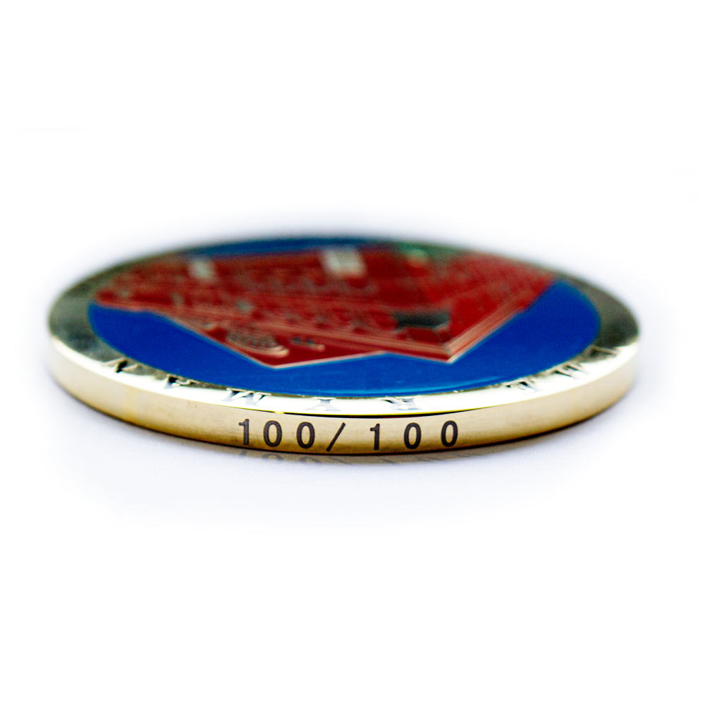 - Die struck in sold brass from 3D steel dies and finished in multiple colors and pure gold plated