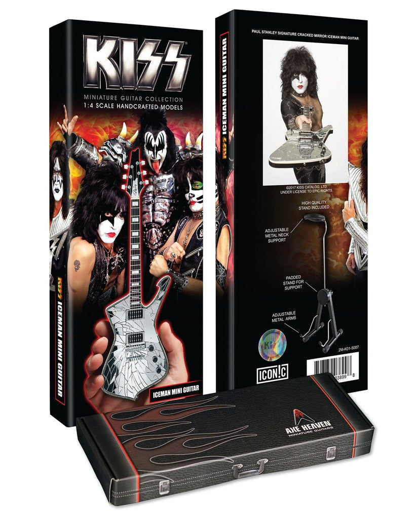 Have you followed KISS on the road? Do you own all of their albums? Is Detroit Rock City your favorite movie? Then Paul Stanley’s iconic Cracked Mirror Iceman mini guitar replica is a must have! It makes the perfect addition to any office, man-cave, or KISS shrine. Show your allegiance to KISS nation with the entire mini guitar collection!