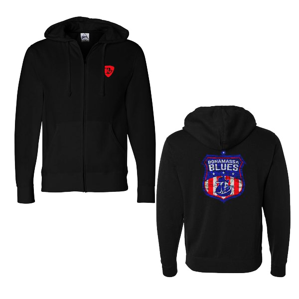 The connection between Joe and blues music runs deep, real deep, and the blues is a true American art form. This cool, stylish zip-up hoodie celebrates that deep connection between Joe, the blues, and America. Like all three, the hoodie is tough, bold, and stands for freedom of expression. Wear it proudly. Wear it often. It’s Bonamassa Blues.