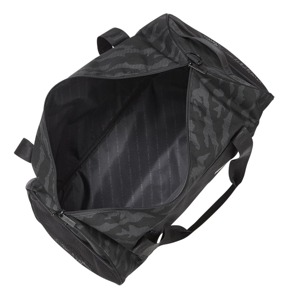 - Side mesh pocket and side zippered shoe pocket with metal eyelets for ventilation