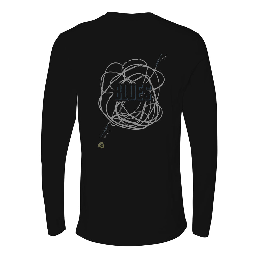 An ode to the that pesky tangled guitar cable you know you have, the Tangled Up in Blues design also represents the way the blues and our lives are all tangled up together. The blues is all about life, after all, and the music we turn to in both our joy and our struggles. This collection is built for comfort and cool blues style and also features the JB Pick Logo