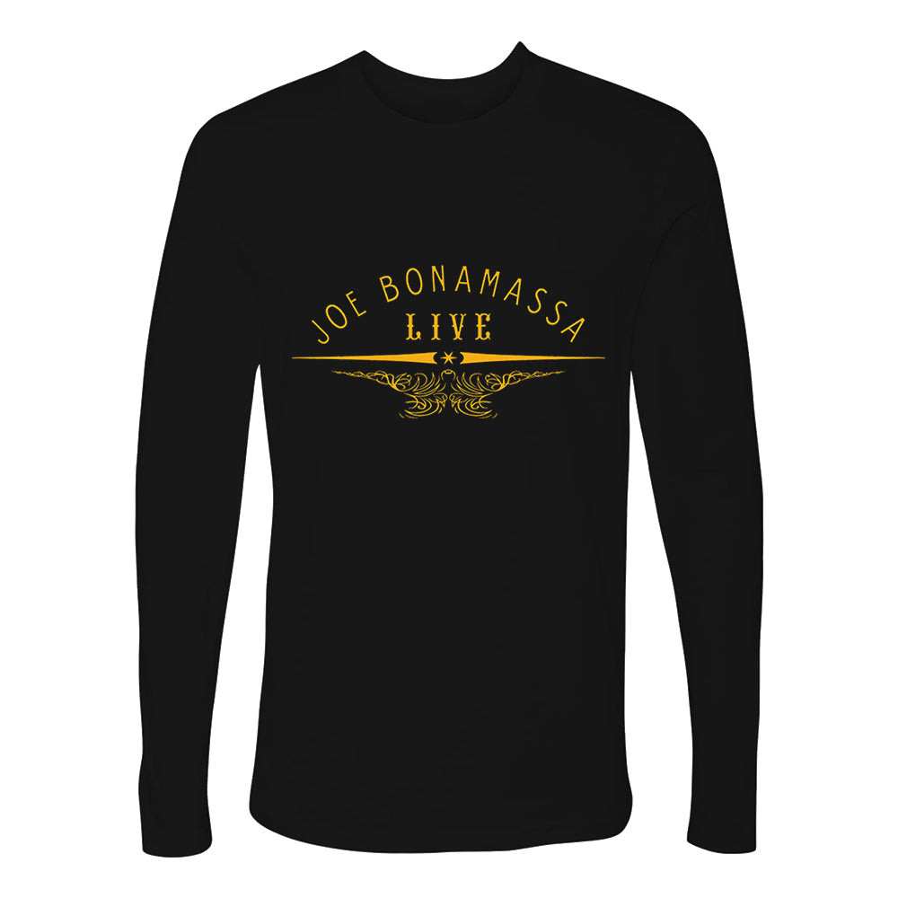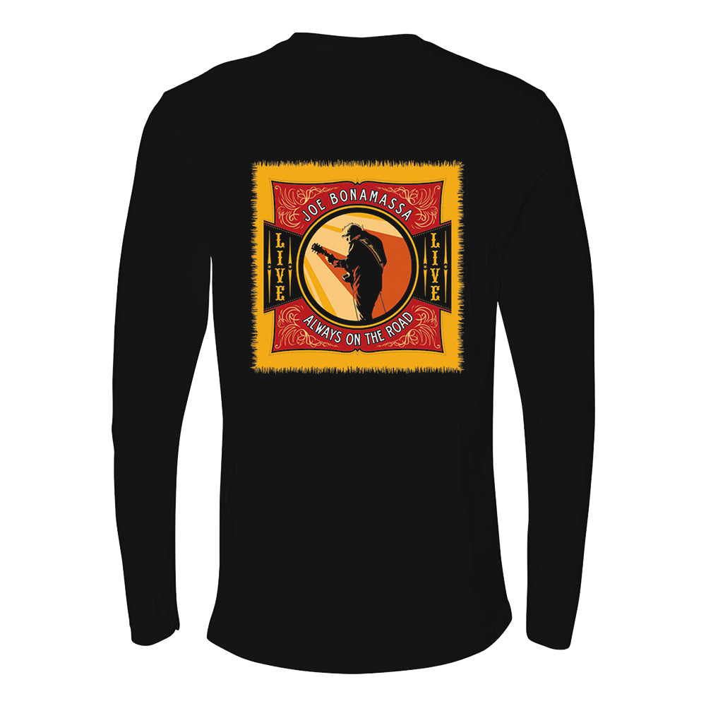 This comfy long sleeve pays homage to Joe Bonamassa’s Live from Nowhere in Particular DVD. It features Joe’s trademark signature on the front and album’s artwork on the back. Joe may be live from nowhere in particular, but this is a long sleeve tee you’ll be proud to wear anywhere.