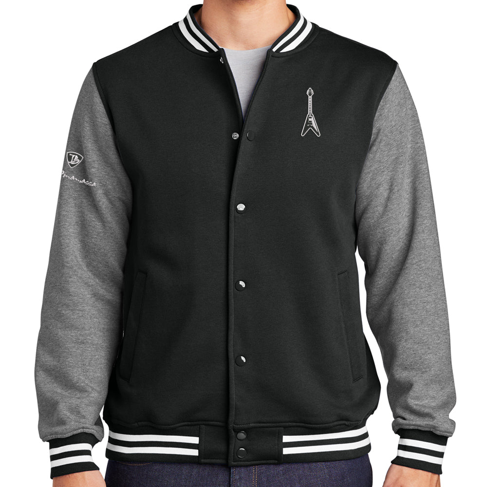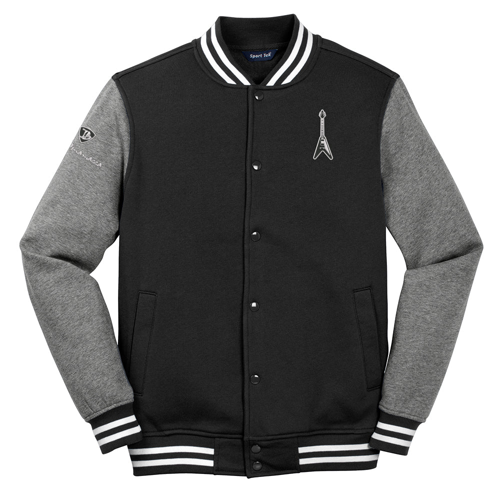 - Flying V Guitar Patch heat pressed on the left chest, 1.5" (W) x 3.5" (H)