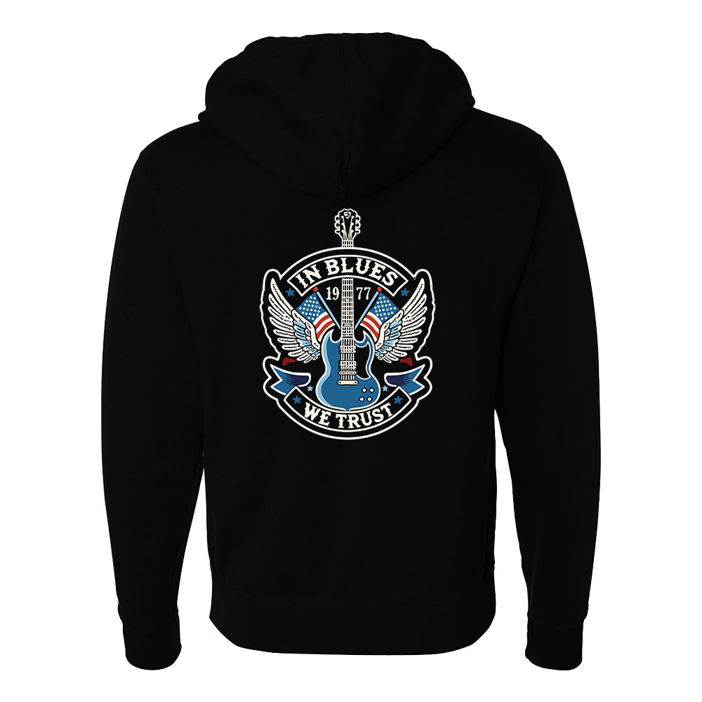 In Blues We Trust SG Guitar Zip-Up Hoodie (Unisex)