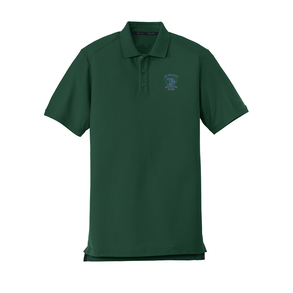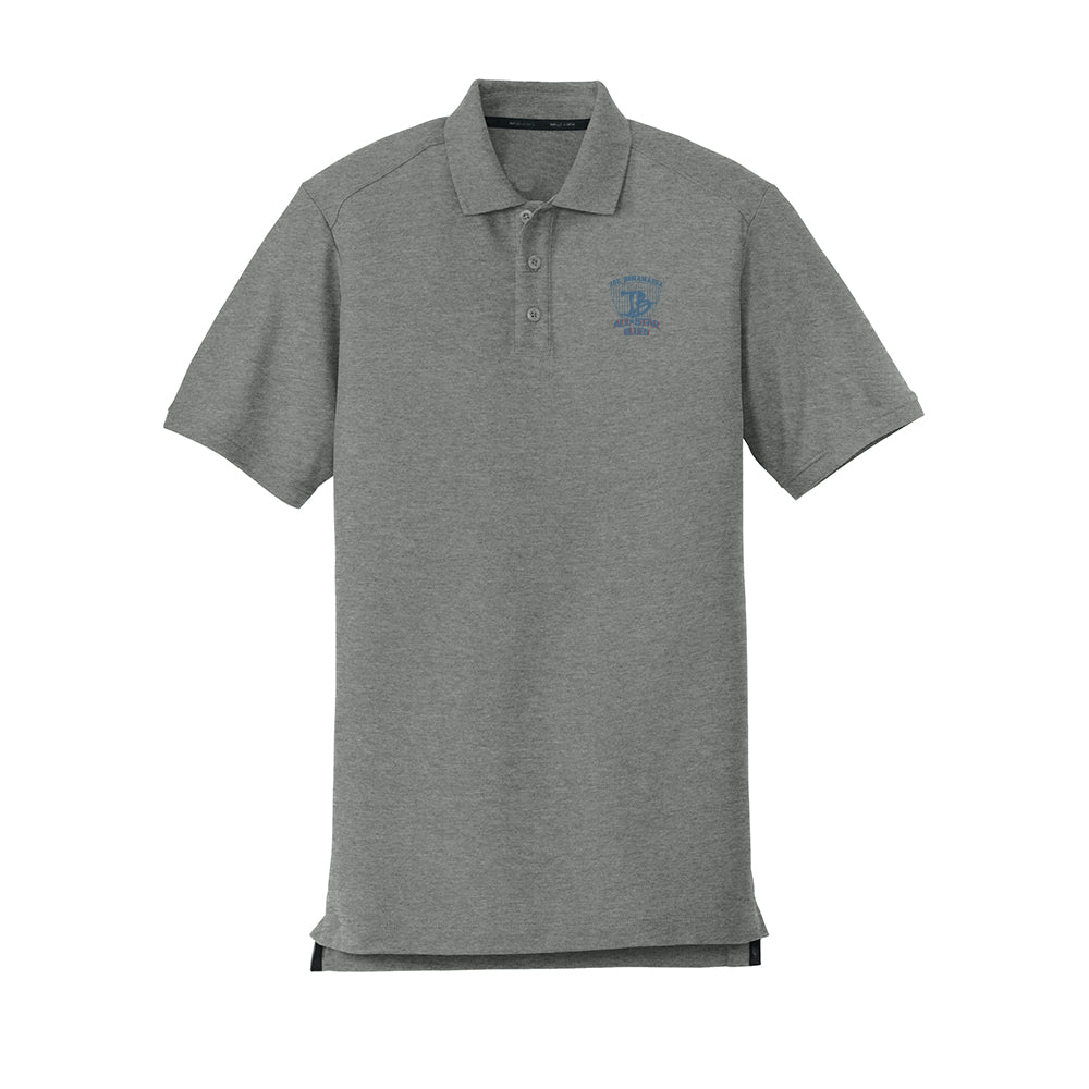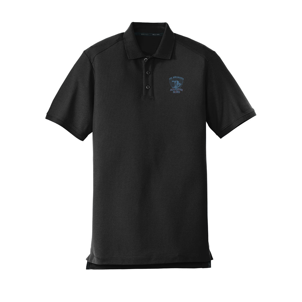 - 5.6-ounce, 63/37 cotton/poly pique with moisture-wicking performance