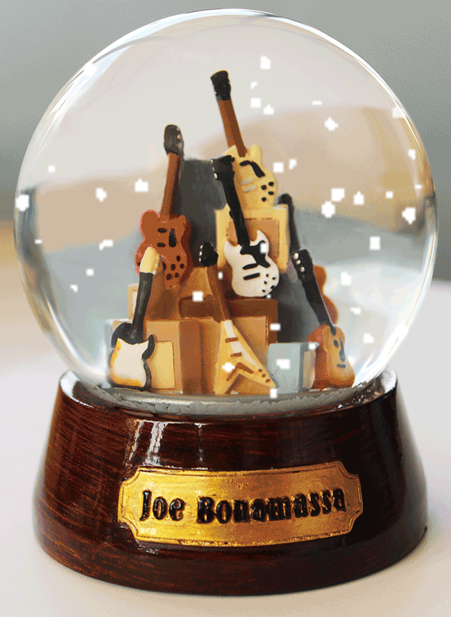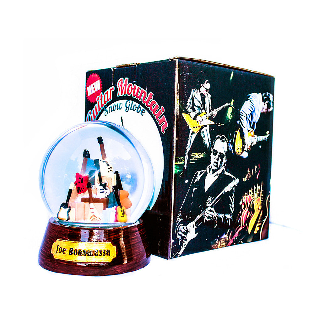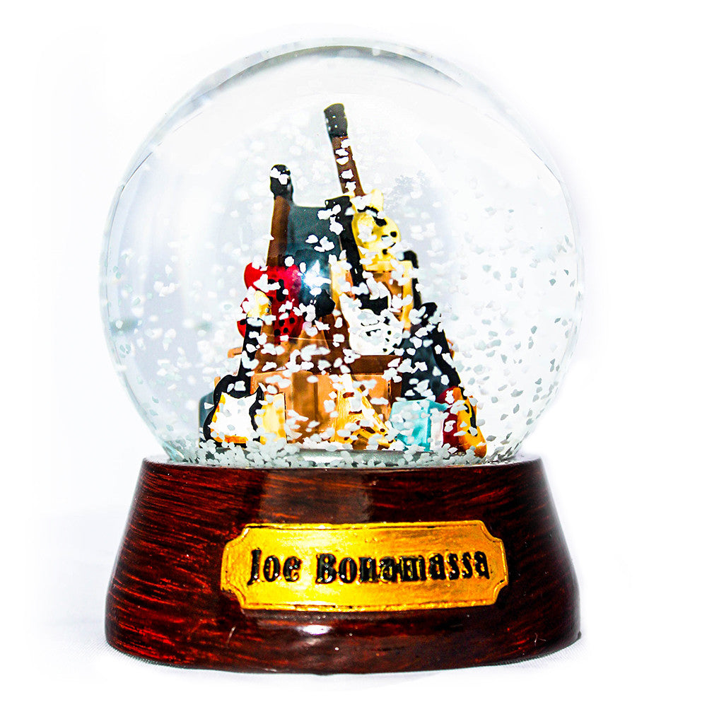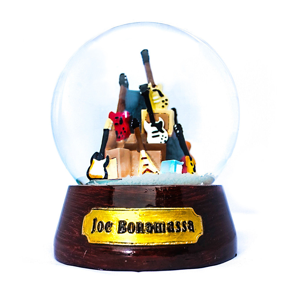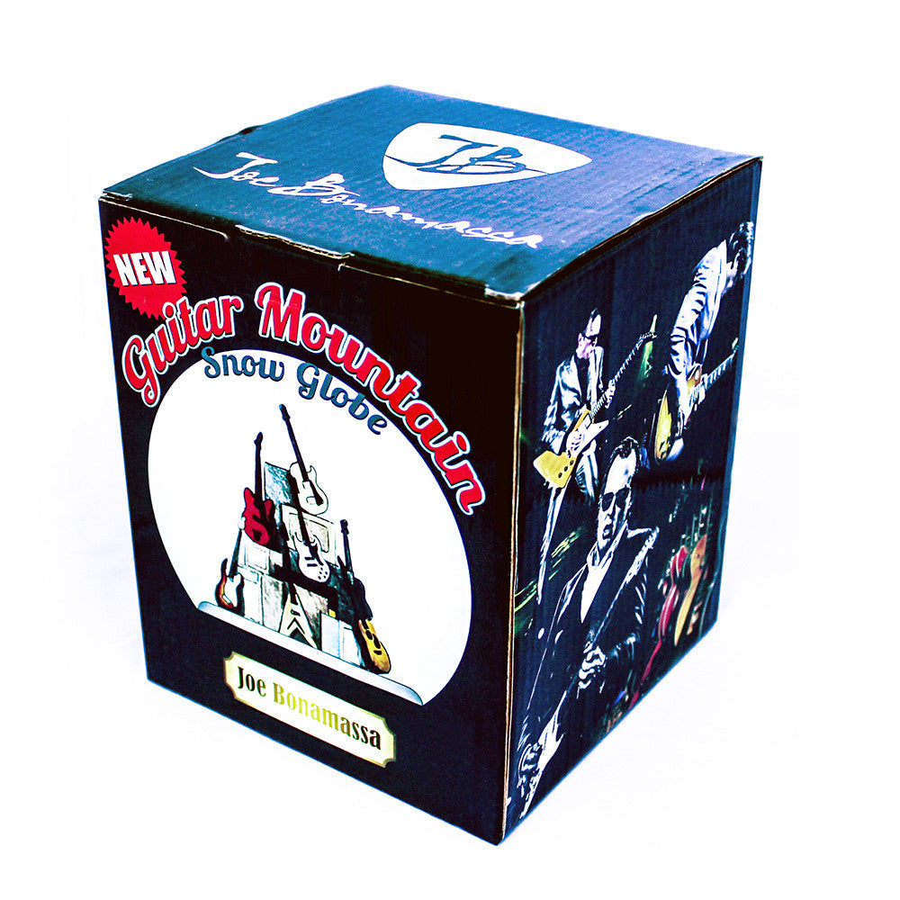 Can a snow globe actually be cool? Now it can! Introducing the Joe Bonamassa Guitar Mountain Snow Globe. No snowmen, fairies, or cartoon mice - this is a totally rockin' snow globe designed by the blues guitar virtuoso himself. The Guitar Mountain Snow Globe is a timeless replica of Joe's Guitar Mountain that took years to build. Composed of a sweet selection of Bonamassa's coolest vintage guitar replicas including a 1959 Les Paul Goldtop and a 1983 Adam Ant Flying V, this is one snow globe you'll actually be proud to put on your mantle, in your man cave, or in your music room. This snow globe is an EXTREMELY limited edition and will never be manufactured again. It's pre-packaged safely and ready to ship! Get yours today - it's Mountain Time!