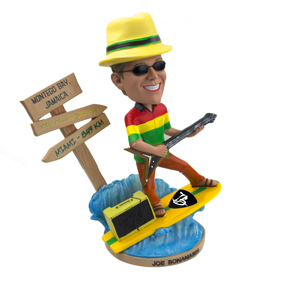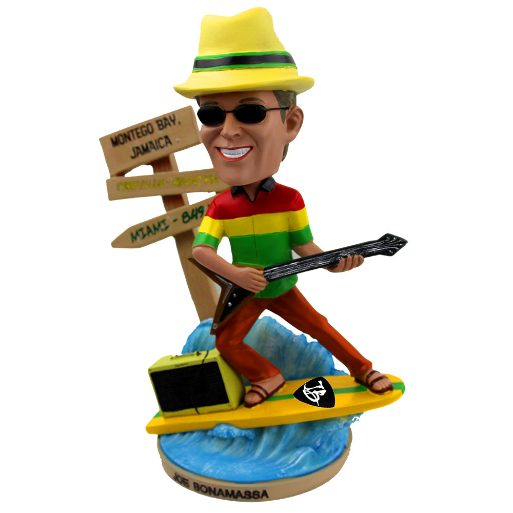 Everything is better with bikinis, booze, and blues! Joe Bonamassa’s 4th annual Keeping The Blues Alive Cruise was a huge success, jam packed with great live music, cool vibes, and fun in the Jamaican sun. Commemorate the unforgettable experience with the official Island Joe II collectible bobblehead figurine. This festive bobble features Joe in bright Jamaican colors, playing his iconic Flying V “Amos.”