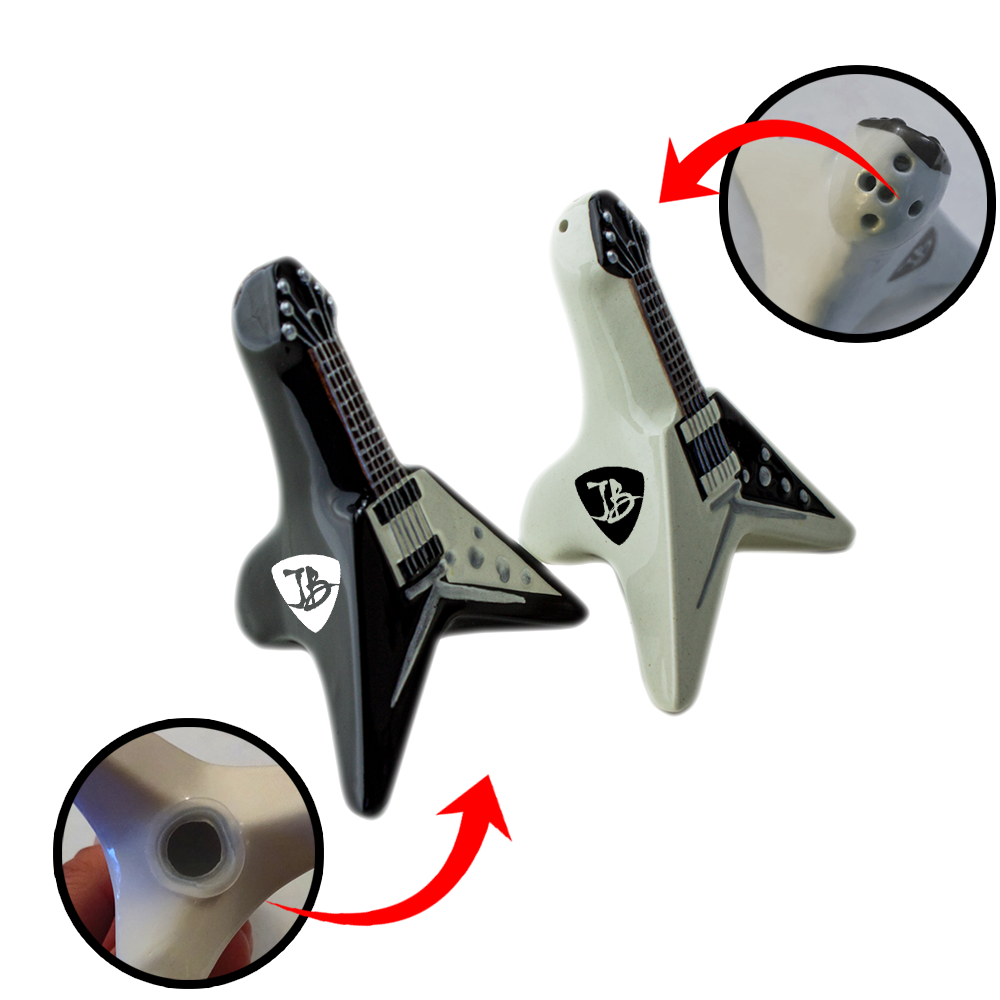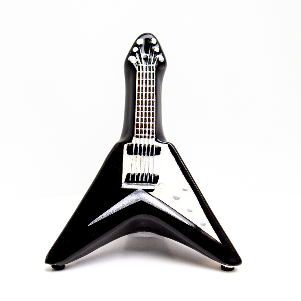Looking for the perfect conversation starter at your next music event? Then look no further than these awesome "Flying V Salt n Pepper Shaker Set". Not only do they add a little spice to the night but add a cool factor as well with them designed to look like vintage Flying "V" guitars. White for Salt, Black for Pepper. It's the perfect gift for any guitar player or musician.