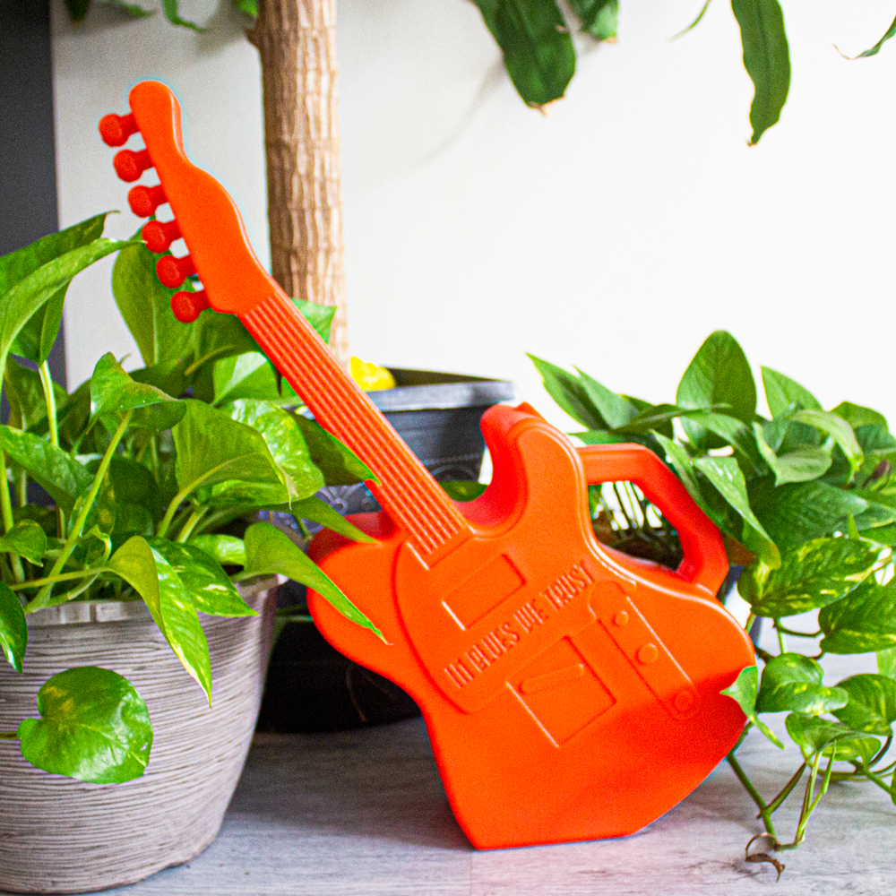 This classic JB designed Guitar Watering Can will fit right into any garden! Furthermore, it’s lightweight and easy to carry. So, no backbone blues in your future! With a debossed JB pick and “In Blues we Trust” logo, it comes in two vivid colors of red & seafoam green. Made of durable plastic, it will hold up to one gallon of water.
