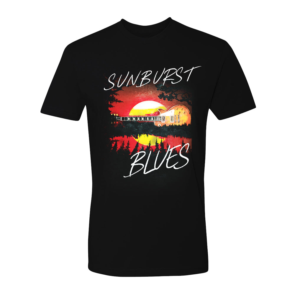 Imagine hiking in the wilderness surrounded by a beautiful landscape with tall sloping mountains and large fresh-smelling pine trees. As you get to the top of a hill, you notice a strange shape but with brilliant colors setting beneath the mountain. Give your wardrobe some color with the JB Sunburst Blues tee and return to nature!