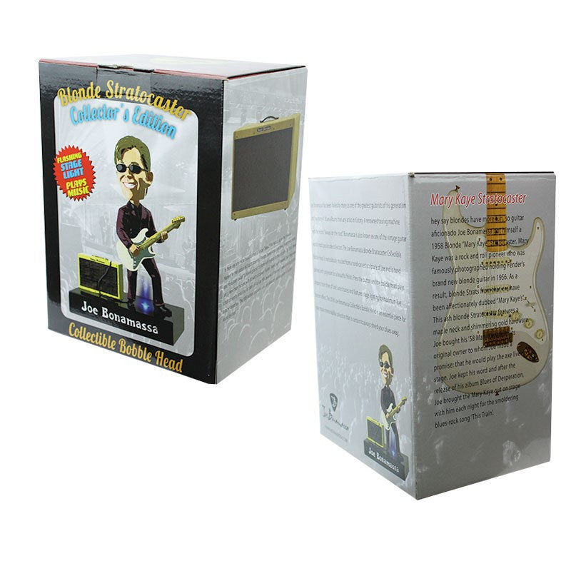 The Joe Bonamassa Blonde Stratocaster Collector's Edition Bona-Bobble is the perfect gift for the blues collectors you love. This guitar-wielding bobble head doll holds Joe’s 1958 Mary Kaye Blonde Fender Stratocaster plugged into a Fender 1959 Tweed High Powered Twin Amp. It also lights up and plays snippets from three Joe songs: Mountain Climbing, This Train, and Drive.