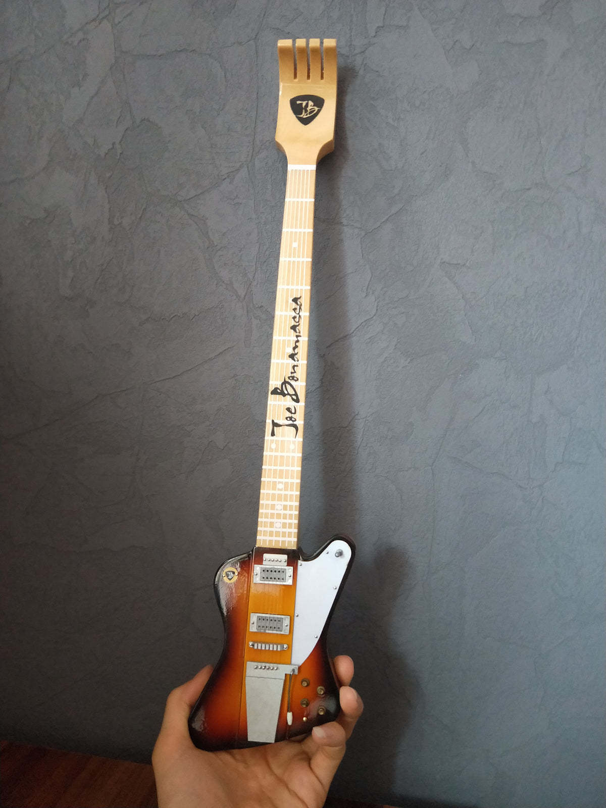 A perfect gift for any music lover! This is design is modeled from a limited-edition guitar that was produced in 1972 with a commemorative medallion embedded in the face of the guitar. Joe has been using this instrument for the song Blues of Desperation.