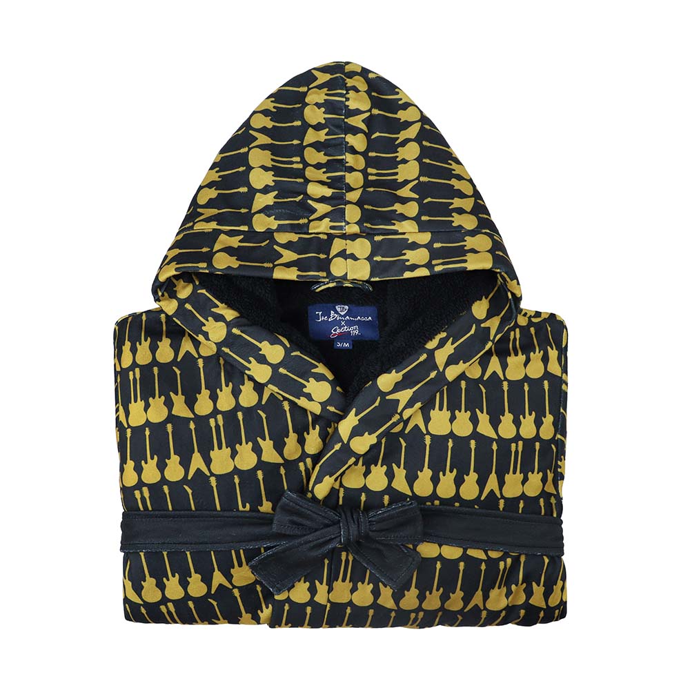 The Joe Bonamassa Guitar Robe is perfect for those who enjoy comfort, Blues music and the idea of neighbors staring in approval as you walk out in your one of a kind robe to get the paper each morning. If that sounds like you then you need this Robe! The perfect post-bath accessory you'll struggle to get out of! This robe is beautiful and thick, making sure to keep you warm even on the coldest of nights! We recommend to wash on delicate cycle and either hang dry or tumble dry low.