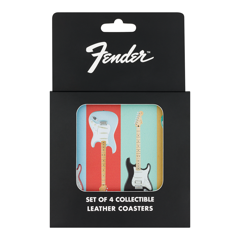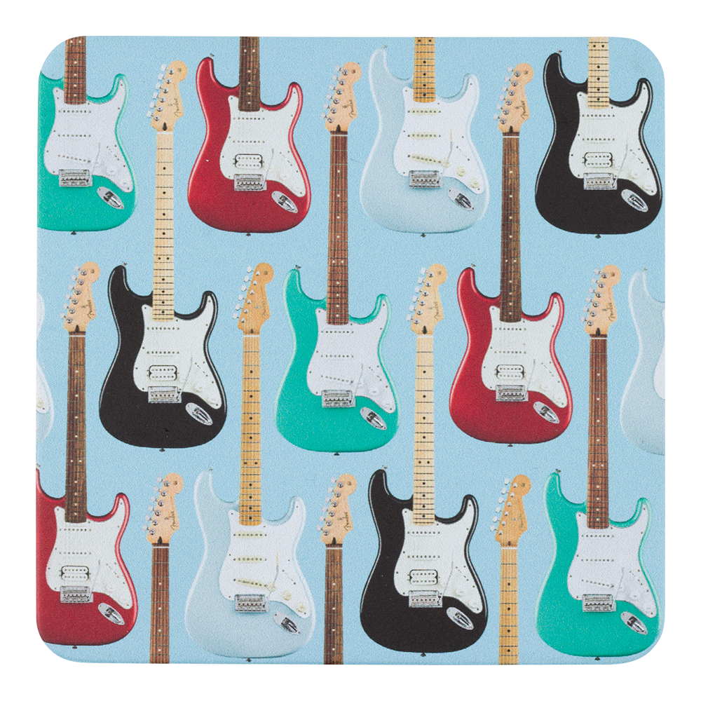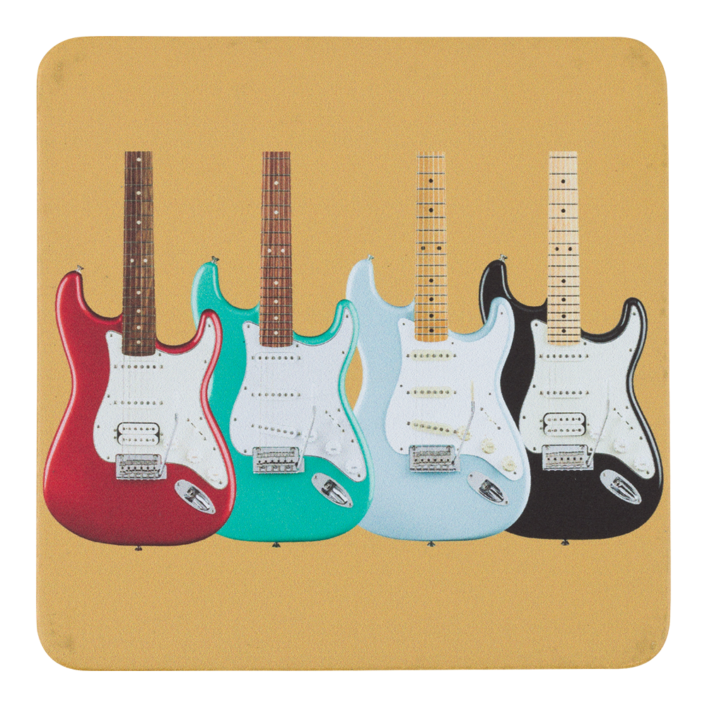 - Set of 4 coasters featuring modern Stratocaster®-inspired designs