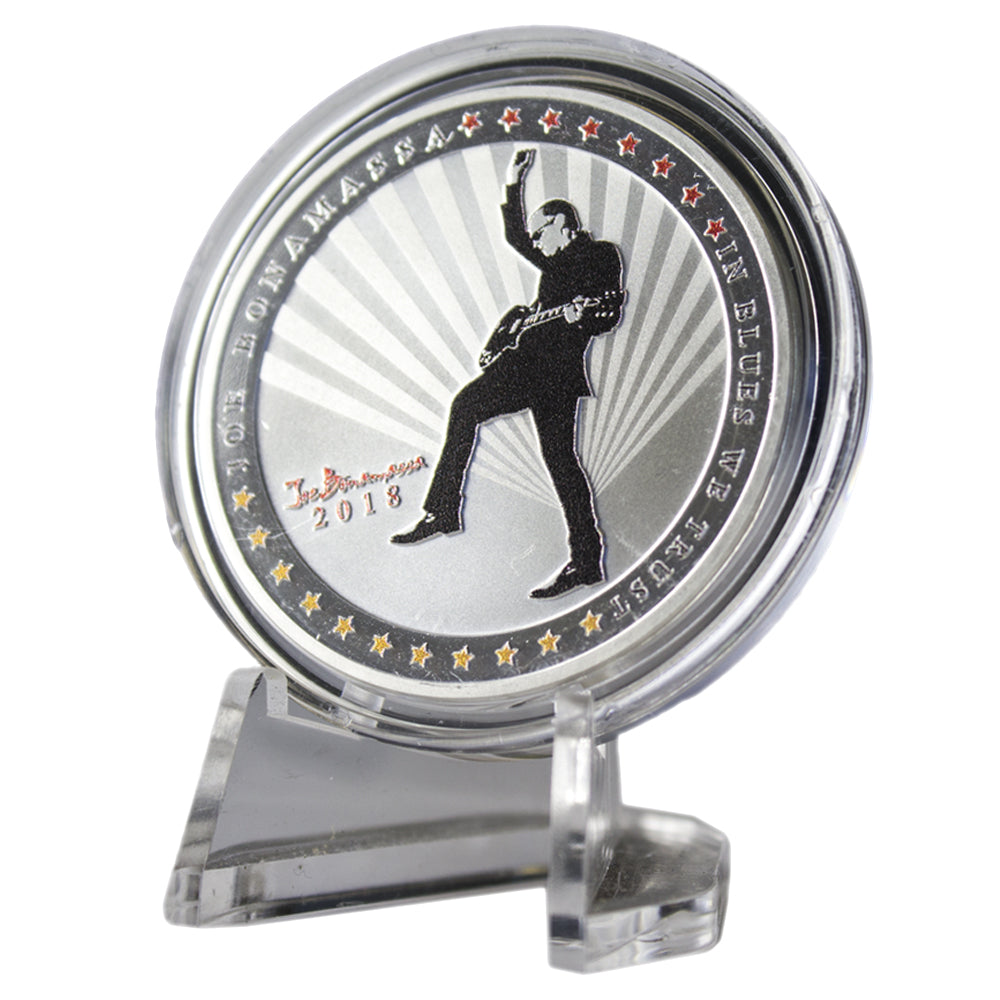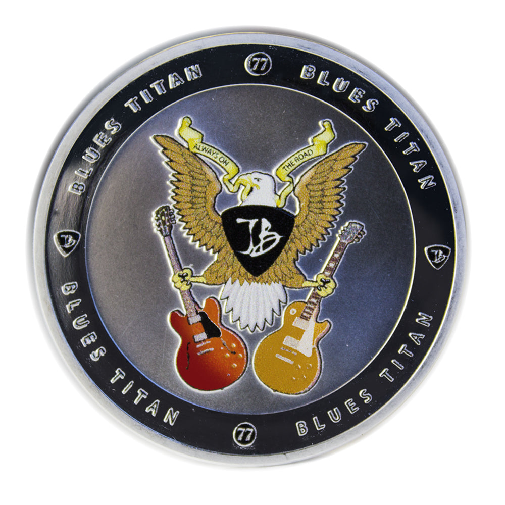 For the collector's in your life, we have the perfect gift for them! A beautiful limited edition 2018 JB Fine Silver Coin. The front of it features the blues rock titan shredding his mighty guitar in the spotlight with the words "In Blues We Trust!" etched on the edges and on the back, an eagle holding two guitars with the words "Blues Titan" etched and a JB pick etched around the eagle. Each coin is sequentially numbered, includes an easel for proper display and a clear protective capsule.