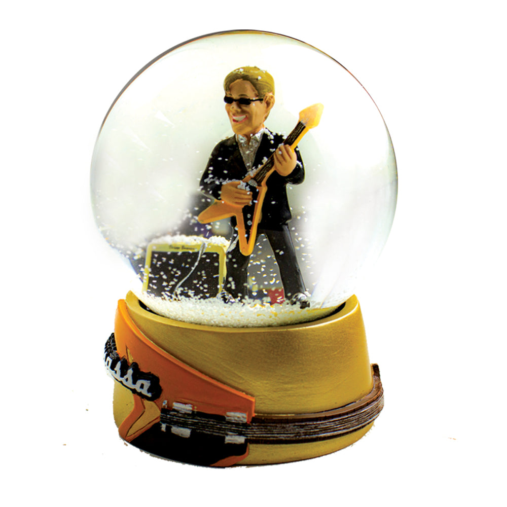 This retro Joe Bonamassa Flying V Snow Globe has Joe dressed to the nines in a very swanky black suit, shredding the infamous “Amos” Flying V. It also features Joe’s custom made ’59 Twin-Amp with the volume turned up to eleven!