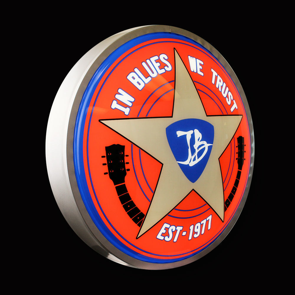 Bring life to any practice space or man cave with the cool new JB LED In Blues We Trust Sign! With vibrant hues of red and blue, this will make a blues statement anywhere it hangs!