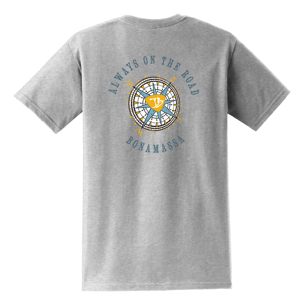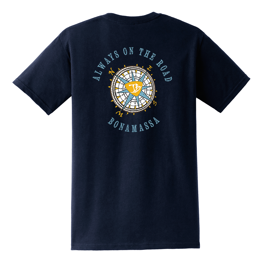 We never know where the road will take us. Let the music guide your way with the JB Always on the Road Compass tee and make sure to follow the bright blues northern star.