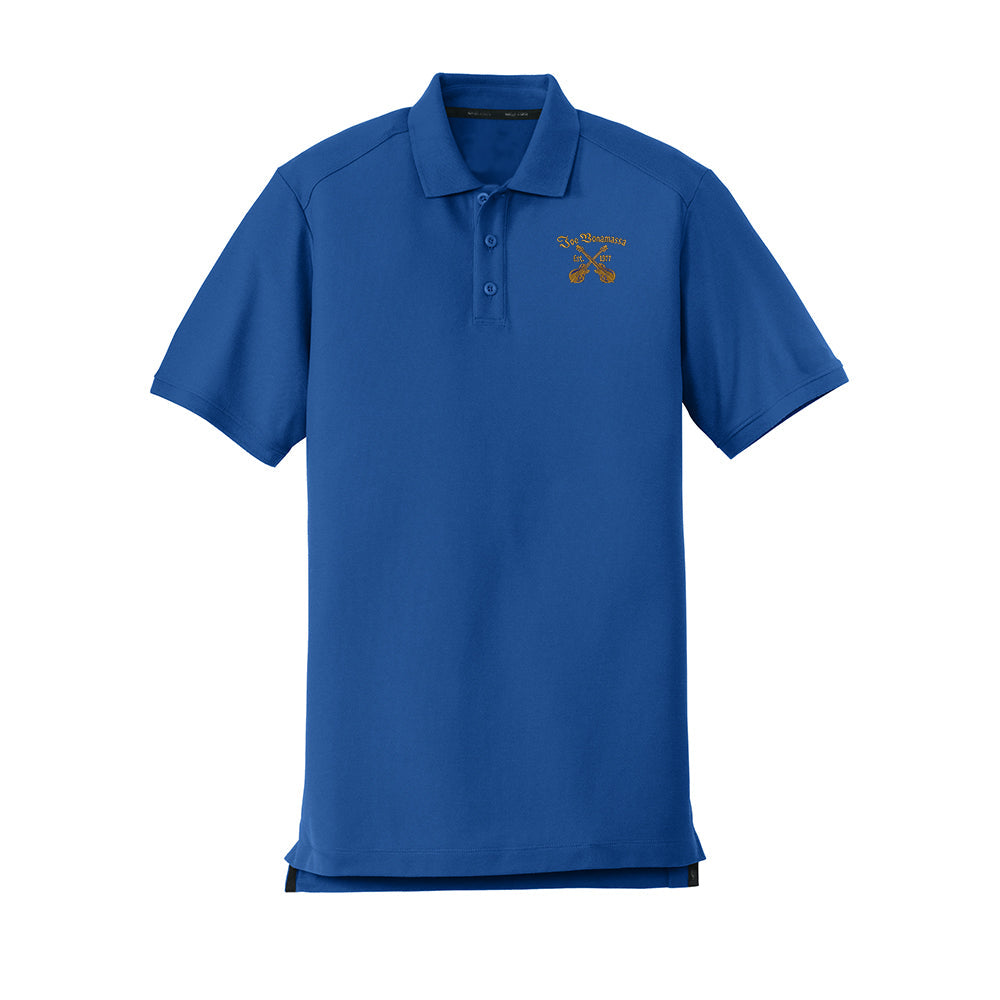 - 5.6-ounce, 63/37 cotton/poly pique with moisture-wicking performance