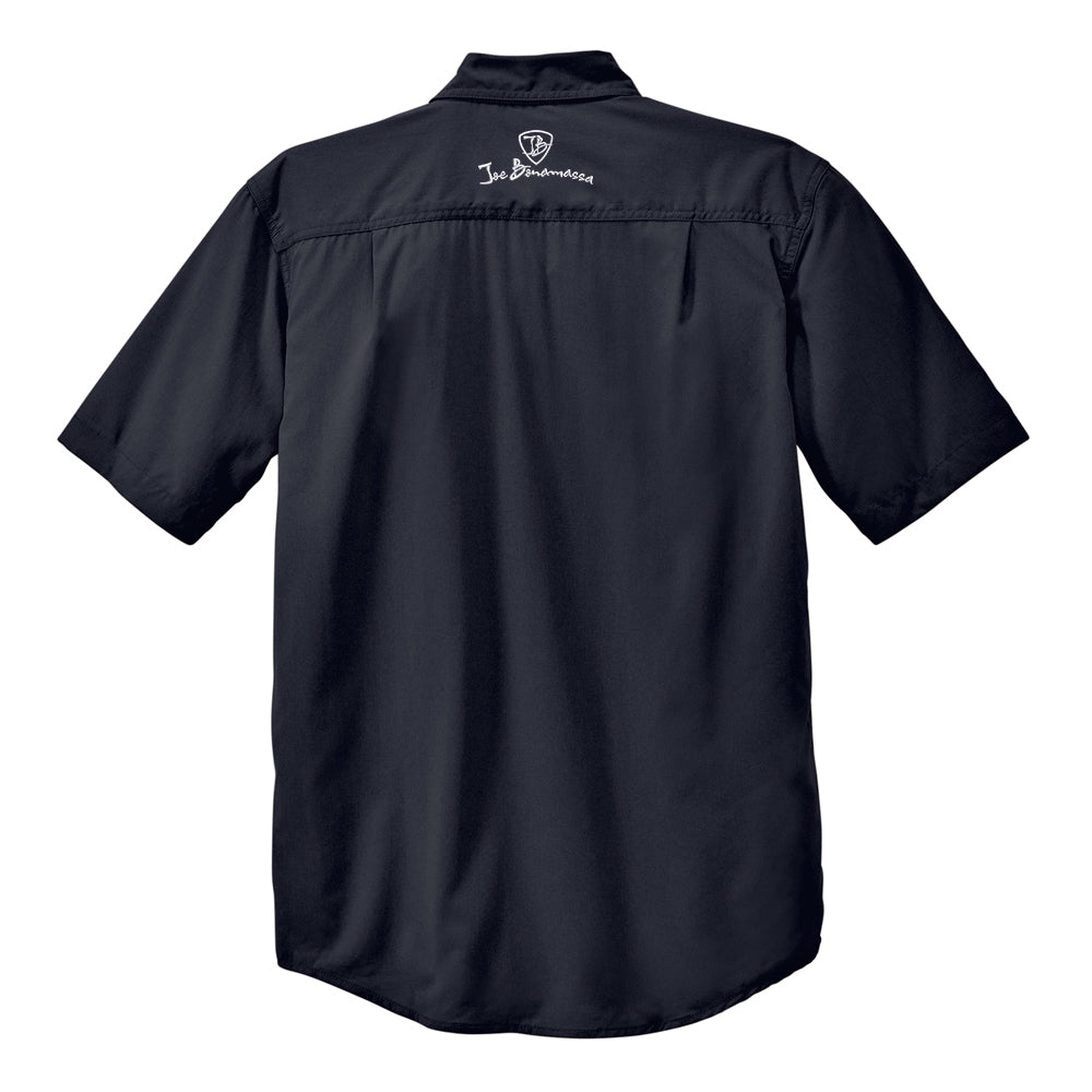 - Two chest pockets with pen stalls, mitered flaps and button closures