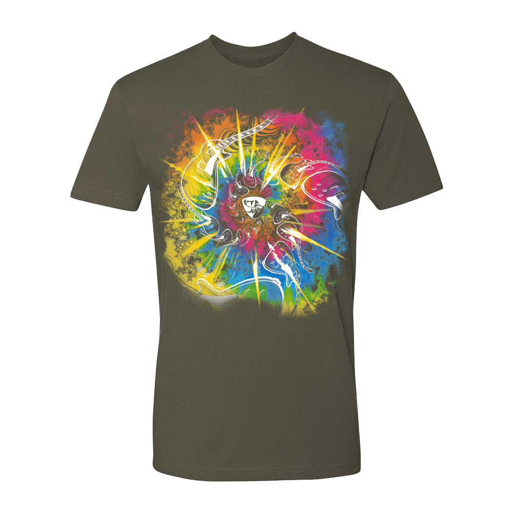 Ever wonder what it felt like to live in the grooviest time in history? Now you can be transported to the psychedelic age with the JB Trippin’ t-shirt. These outrageously colored guitars will make you look and feel out of this world!