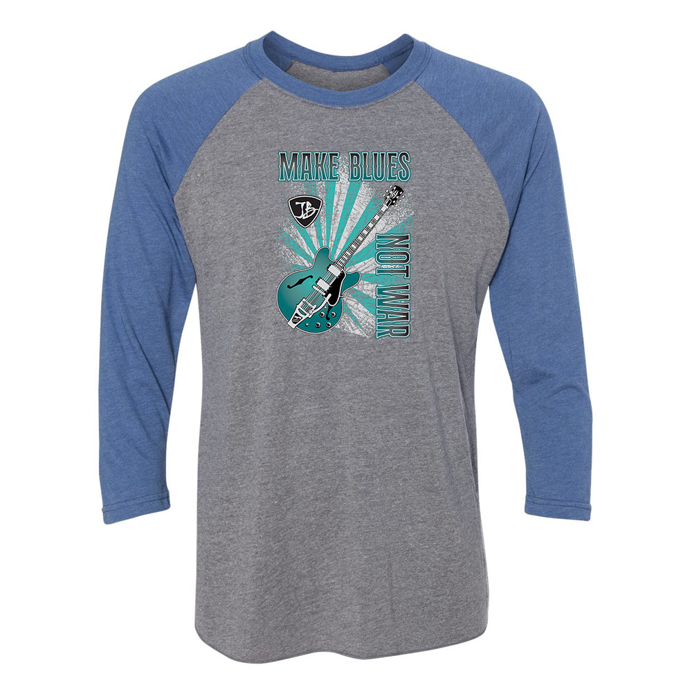 Make Blues Not War Turquoise 3/4 Sleeve T-Shirt (Unisex)