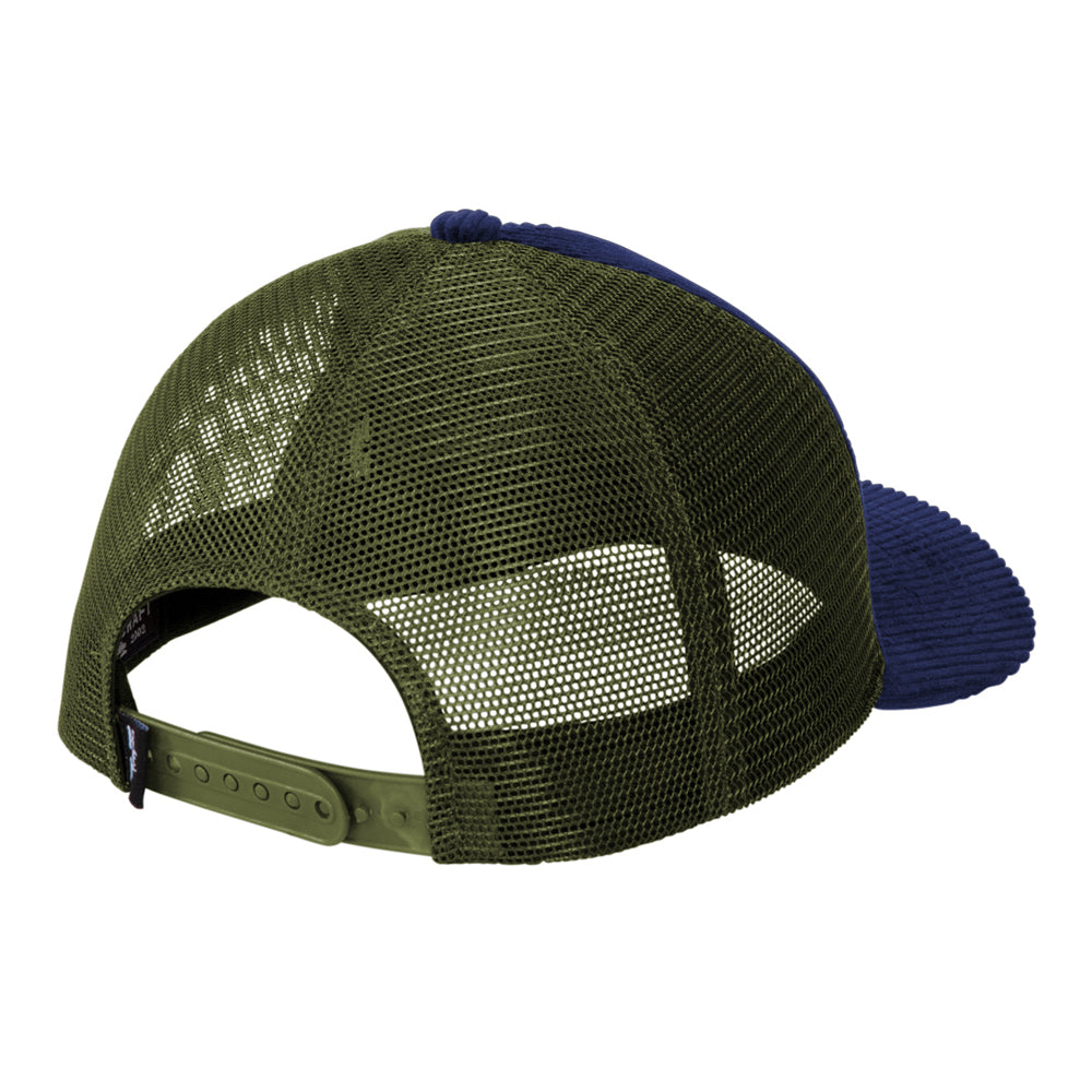 - Corduroy front panels/soft trucker mesh mid and back panels