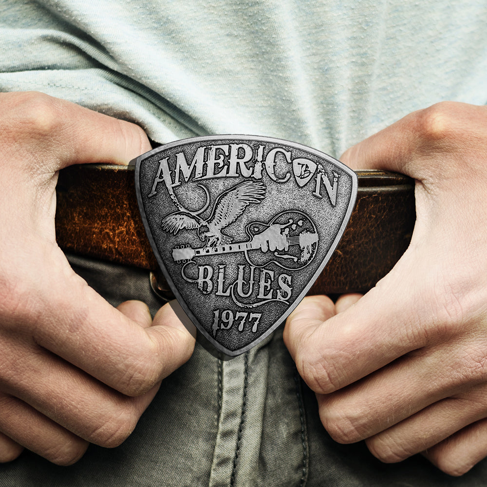 The blues is steeped in rich, pure, and time-honored American traditions. To us fans, blues is more than just music, it's a lifestyle. Salute America's past time with the authentic JB Blues Pick belt buckle. You will be most well-dressed and coolest bluesman in the room!