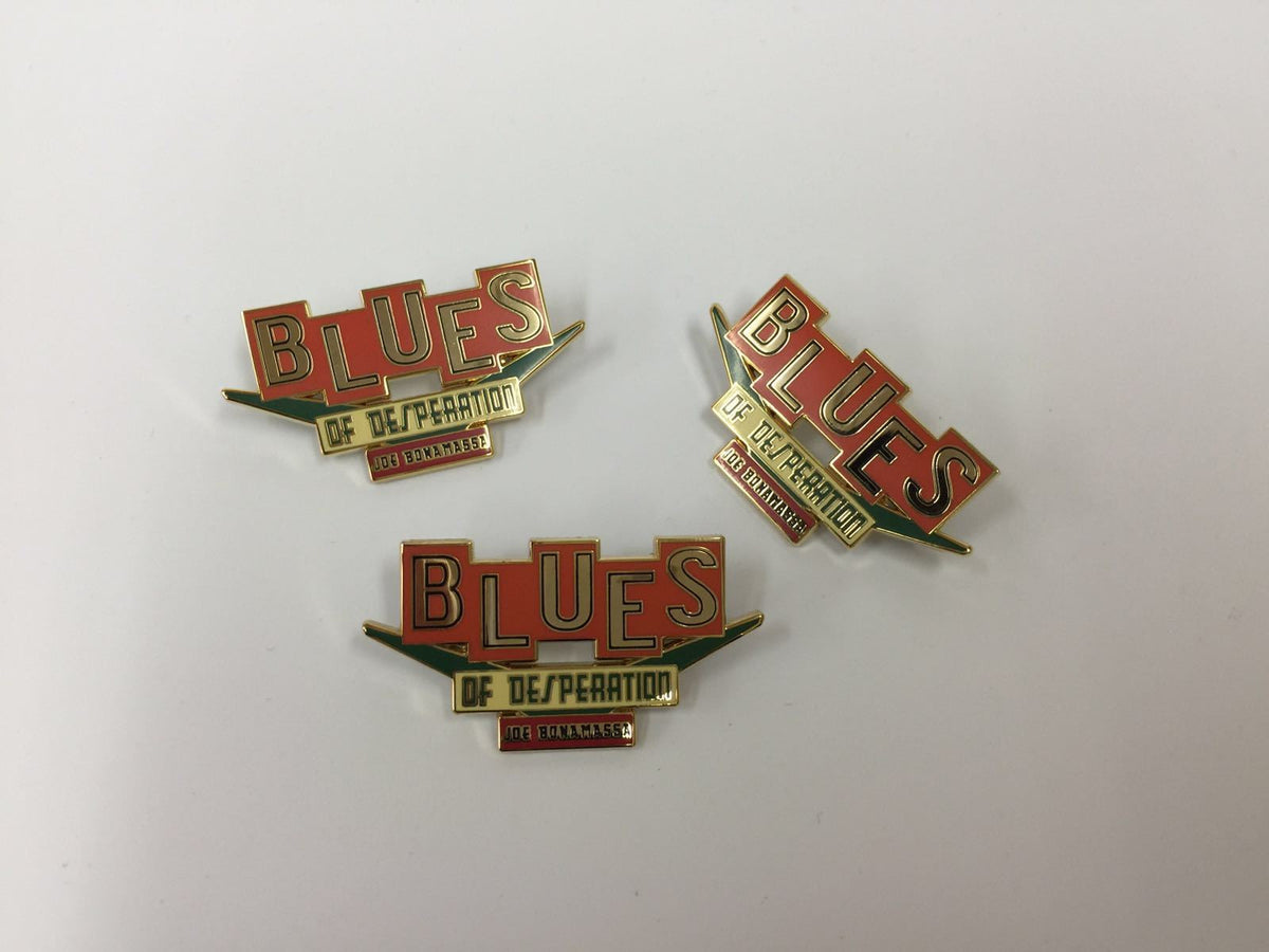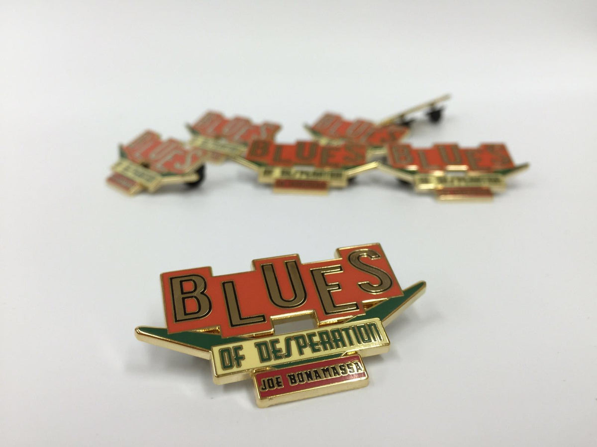 Introducing our brand new quality, authentic Joe Bonamassa trading pin special for release of Joe's latest album Blues of Desperation! This fine, high-quality pin features the album title and Joe's name in a cool design that you will love. Blues of Desperation sees the maverick superstar guitarist, singer and songwriter tossing away the rule book as he continues to reinvent and redefine the blues-rock genre like no other artist working today. Don't miss out on this special pin and help us celebrate the release of Blues of Desperation!