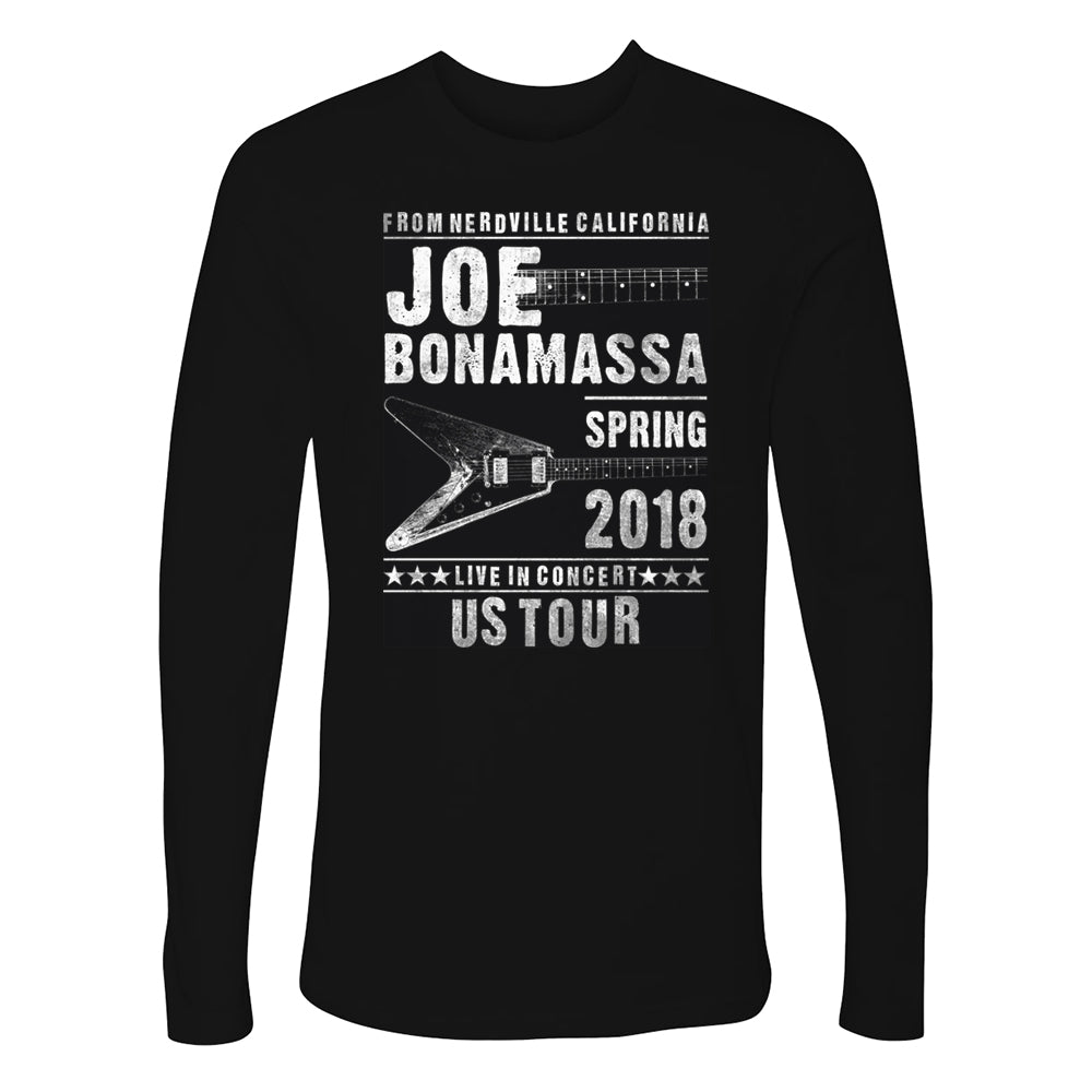 Joe Bonamassa has pushed through exhaustion, broken strings, and lack of Diet Coke to deliver his brand of blues-rock to his fans. He stays true to his slogan of being “Always on the Road” by embarking on his US Spring Tour. Represent the bluesman with the official 2018 US Spring Tour long sleeve, featuring Joe’s favorite Flying V!