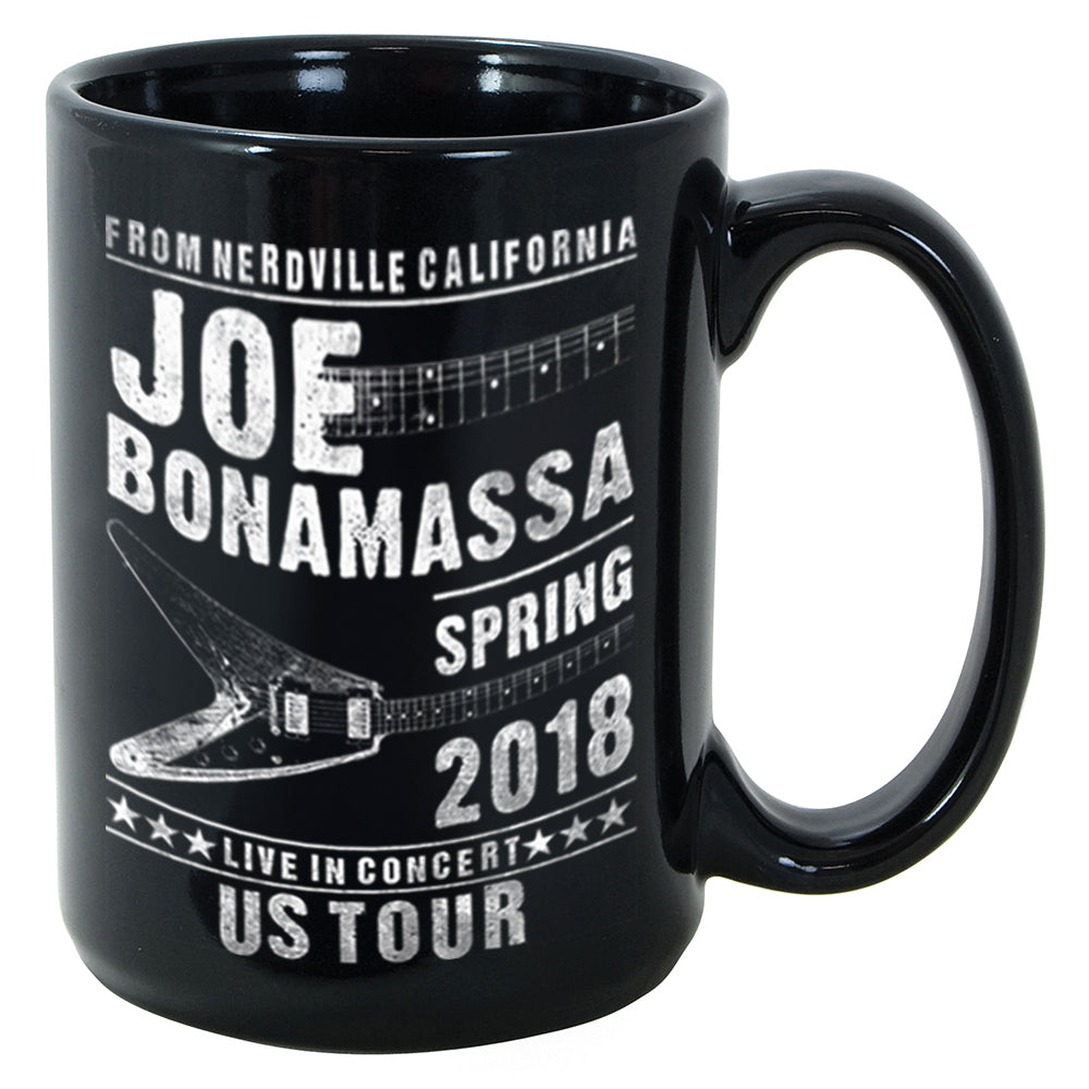 Joe Bonamassa has pushed through exhaustion, broken strings, and lack of Diet Coke to deliver his brand of blues-rock to his fans. He stays true to his slogan of being “Always on the Road” by embarking on his US Spring Tour. Represent the bluesman with the official 2018 US Spring Tour mug, featuring Joe’s favorite Flying V!