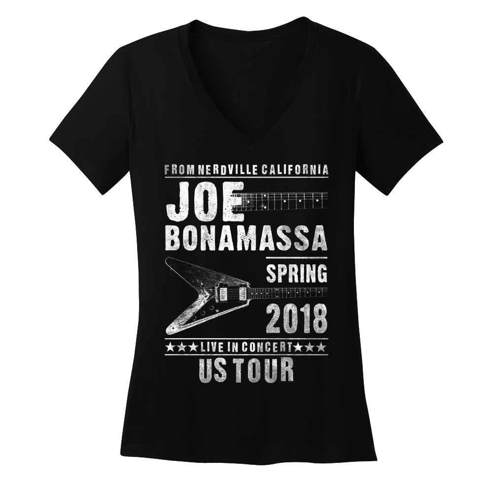 Joe Bonamassa has pushed through exhaustion, broken strings, and lack of Diet Coke to deliver his brand of blues-rock to his fans. He stays true to his slogan of being “Always on the Road” by embarking on his US Spring Tour. Represent the bluesman with the official 2018 US Spring Tour v-neck, featuring Joe’s favorite Flying V!