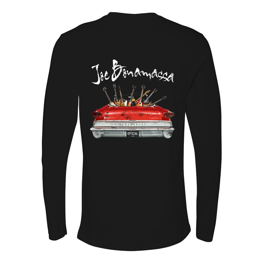 Hit the streets and promote your favorite blues guitarist - Joe Bonamassa! This design showcases a cool vintage car with all of Joe's favorite guitars sitting in the back seat looking fierce and ready to rock n roll!