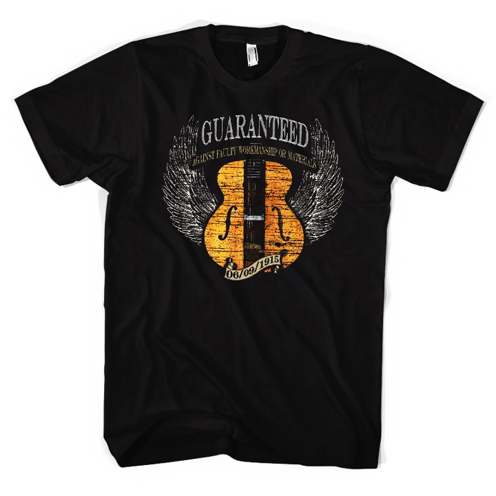 This awesome tee features a breathtaking classic guitar with angel wings and says “Guaranteed Against Faulty Workmanship or Materials,” dated in commemoration, 06/09/2015. This tee will have all your friends telling you how much your clothes rock. We guarantee it.