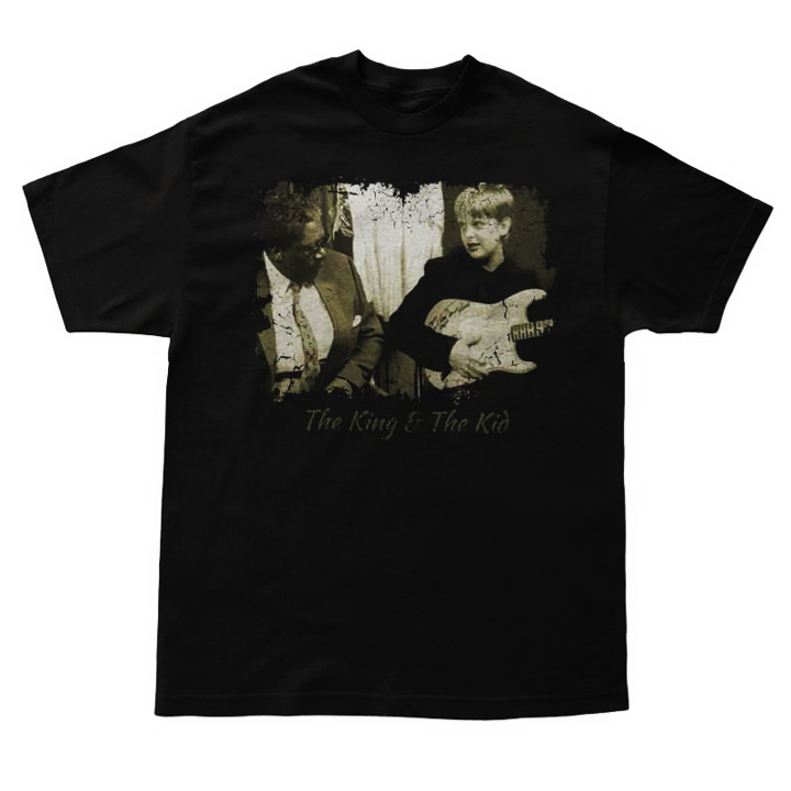 The blues world lost one of its greatest heroes when B.B. King passed away, and Joe Bonamassa lost a friend and mentor. “The King and the Kid” tee commemorates the beginnings of that friendship, when a young phenom named Joe Bonamassa opened for Mr. King when Joe was merely 12 years old. This black crewneck tribute t-shirt displays the moment in time when a young Joe was graced by the King backstage, between shows. Any fan of Joe Bonamassa and the blues will treasure owning this commemorative tee.