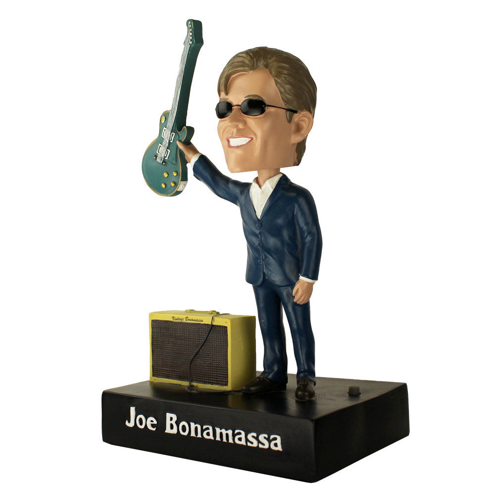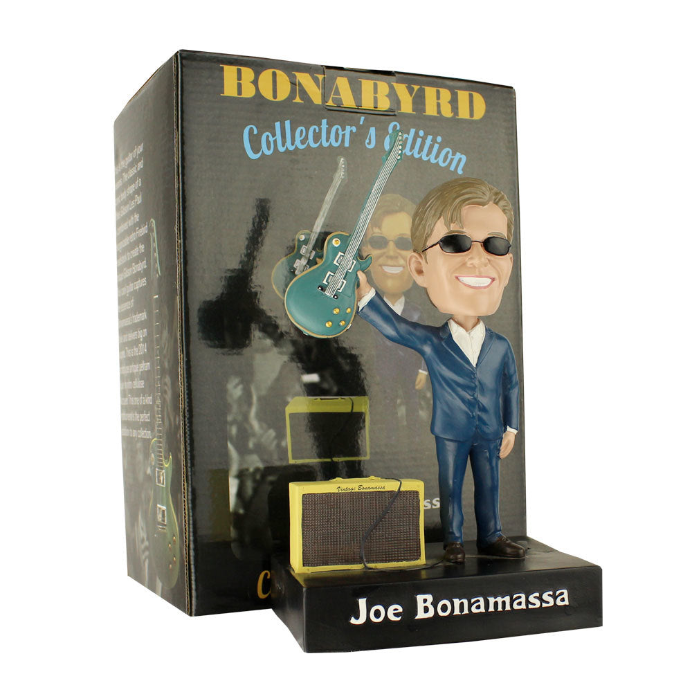 The signature JB salute! After an exhilarating two-hour show with fans going wild for Joe’s sensational guitar slaying, he gives his signature post show “thanks” by raising his guitar straight in the air. Add this cool new collectible Bonamassa bobble head featuring Joe’s stunning Gibson Bonabyrd and his trusty Fender tweed amp.