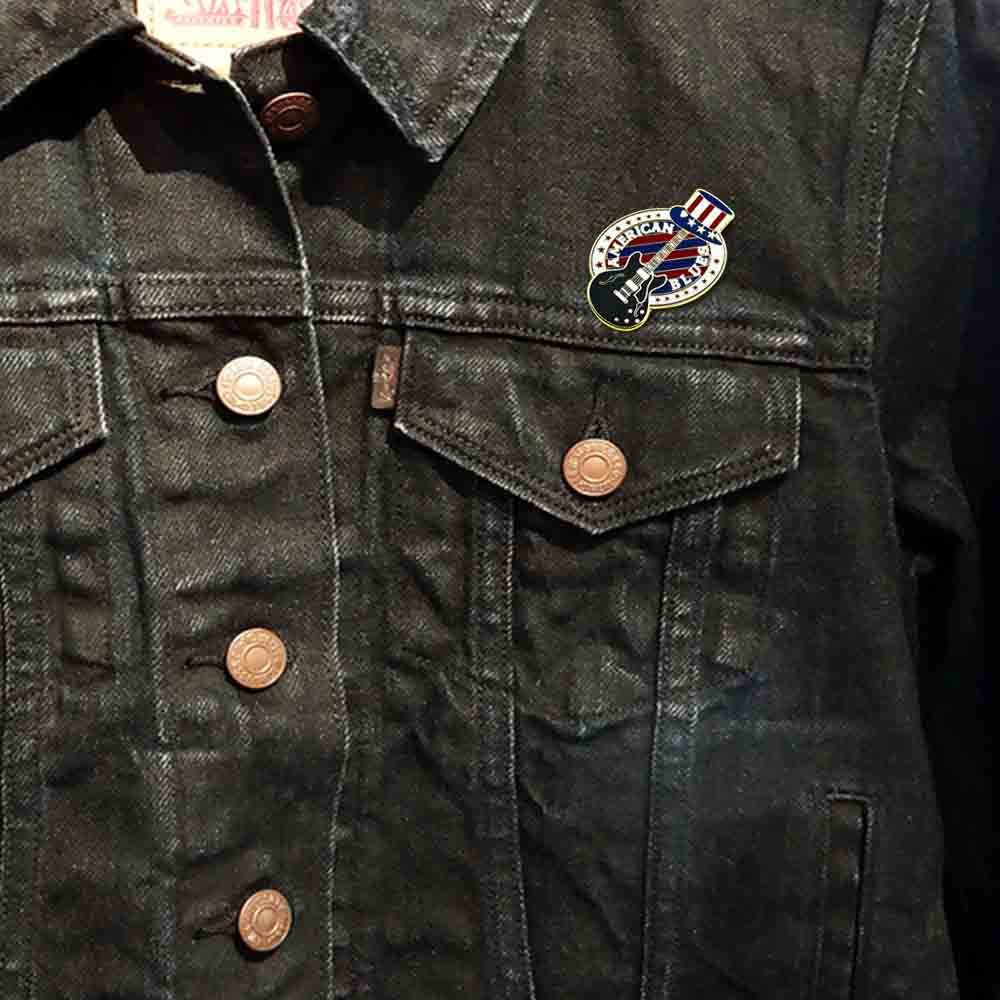 Sick of politics? So are we. So we're voting Blues and you should too! The new official Joe Bonamassa Collectible Pin 'Vote for the Blues' says "American Blues" and features a very patriotic ES-355 in black capped off with an Uncle Sam hat on the headstock.
