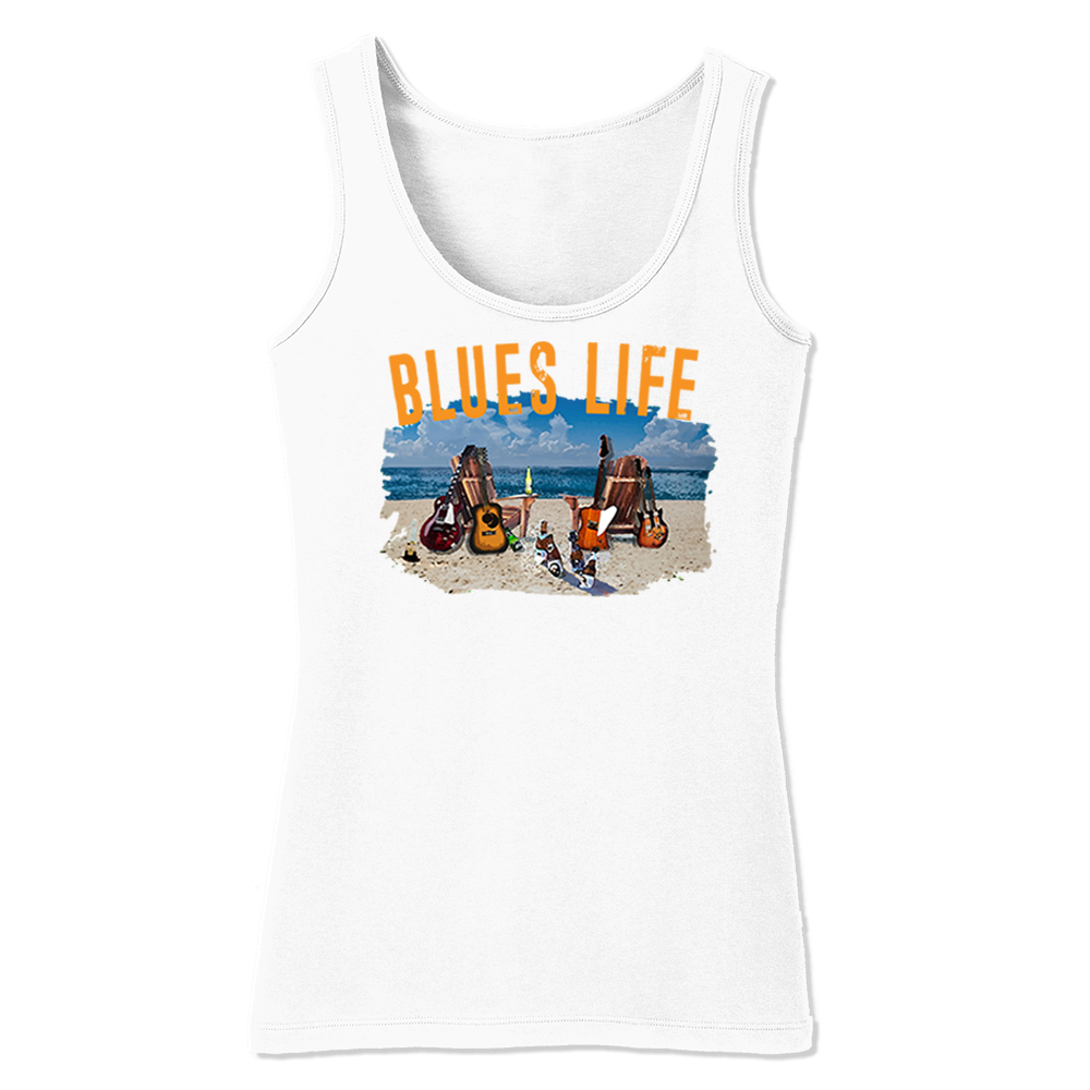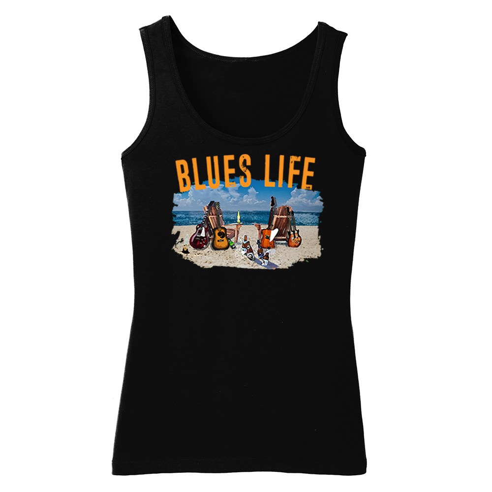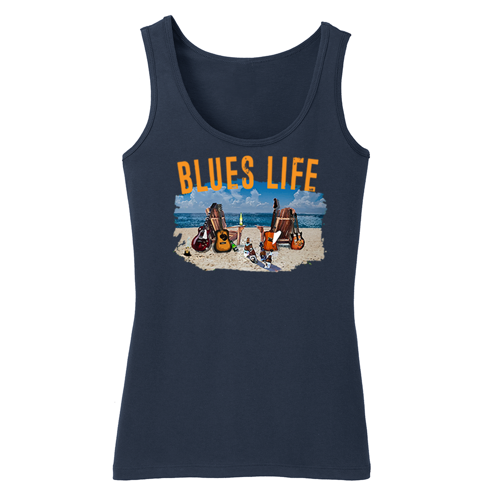 *Gone Bluesin’* A secluded beach, a margarita in one hand, and an acoustic guitar right next to you. Can you paint a more glorious picture than that? Go to your happy place with the JB Blues Life tee, complete with sand, surf, and great tunes