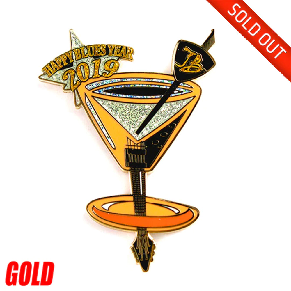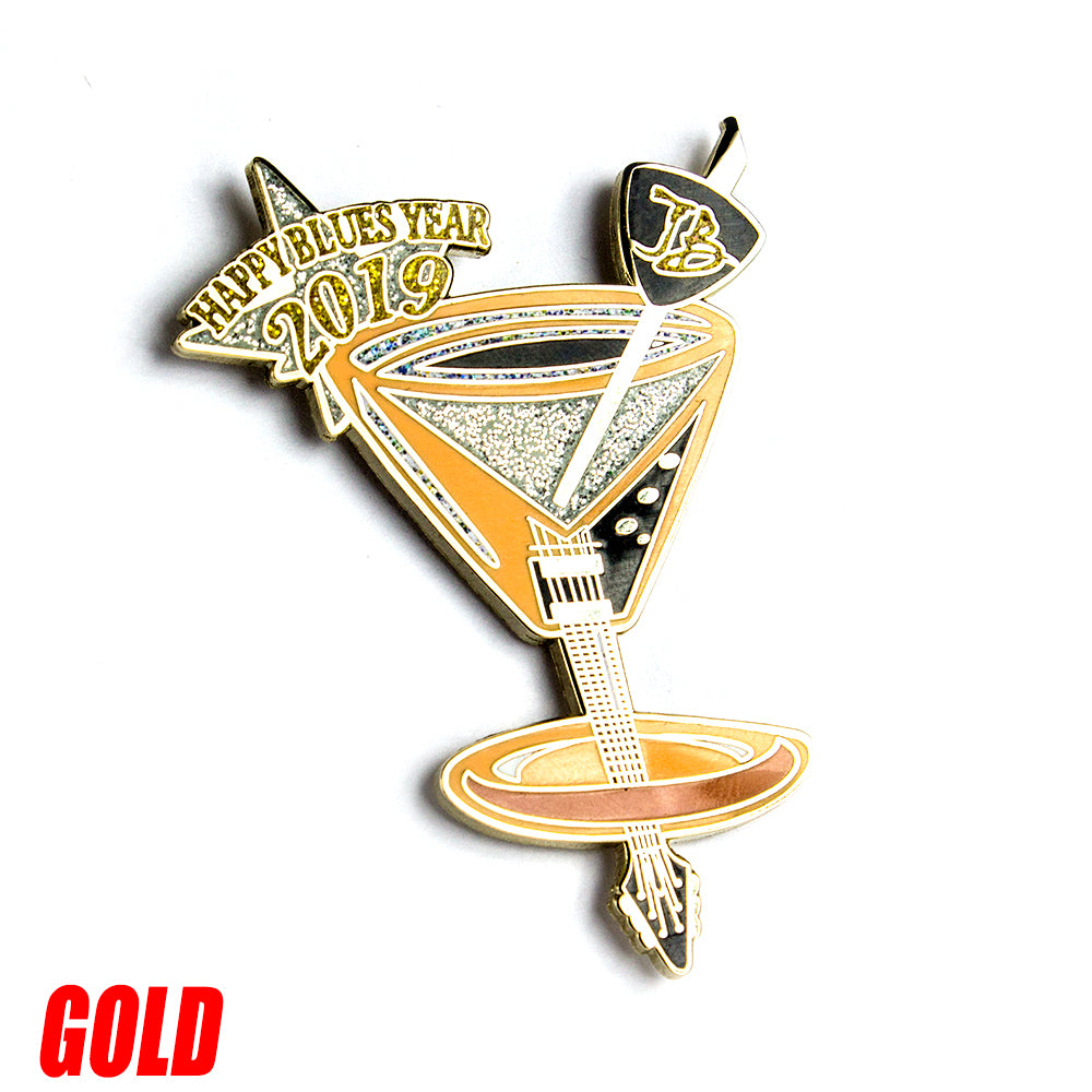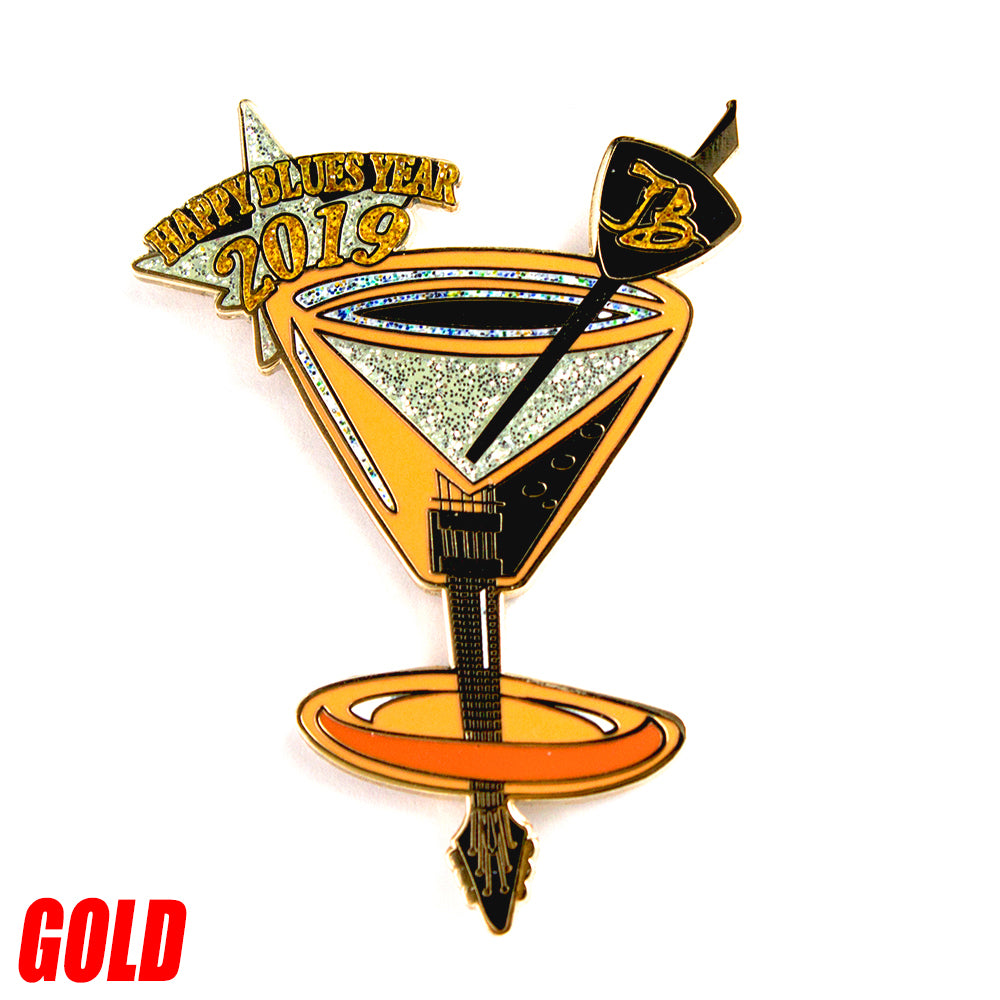 The 2019 Blues New Year pins are finally here! Ring in the new year with this eclectic 2019 pin! It's a snazzy Flying V designed as a martini glass with a JB pick swizzle stick! It has an orange and gold color enamel finish to make it stand out at any party. Get your's before they're gone because these are limited!