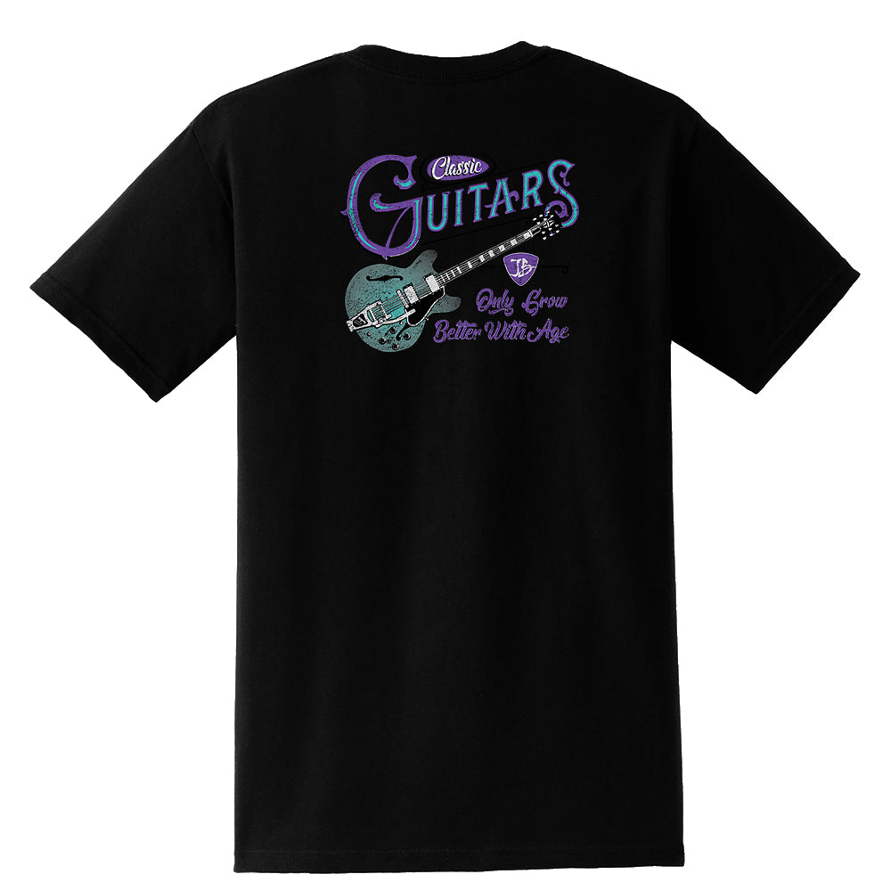 Classic Guitars Only Grow Better with Age Pocket T-Shirt (Unisex) - Black