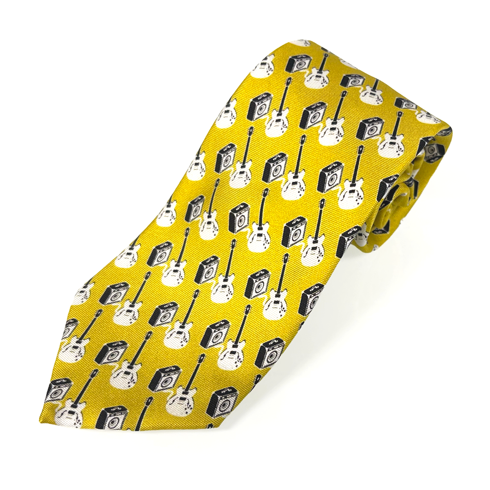 The Joe Bonamassa "Guitar & Amp - White / Gold Tie" is part of the Joe Bonamassa Signature Neckwear collection designed by the famed blues guitarist. A Joe Bonamassa guitar solo is unforgettably on point. But a Joe Bonamassa neck tie? Unforgettably sharp.