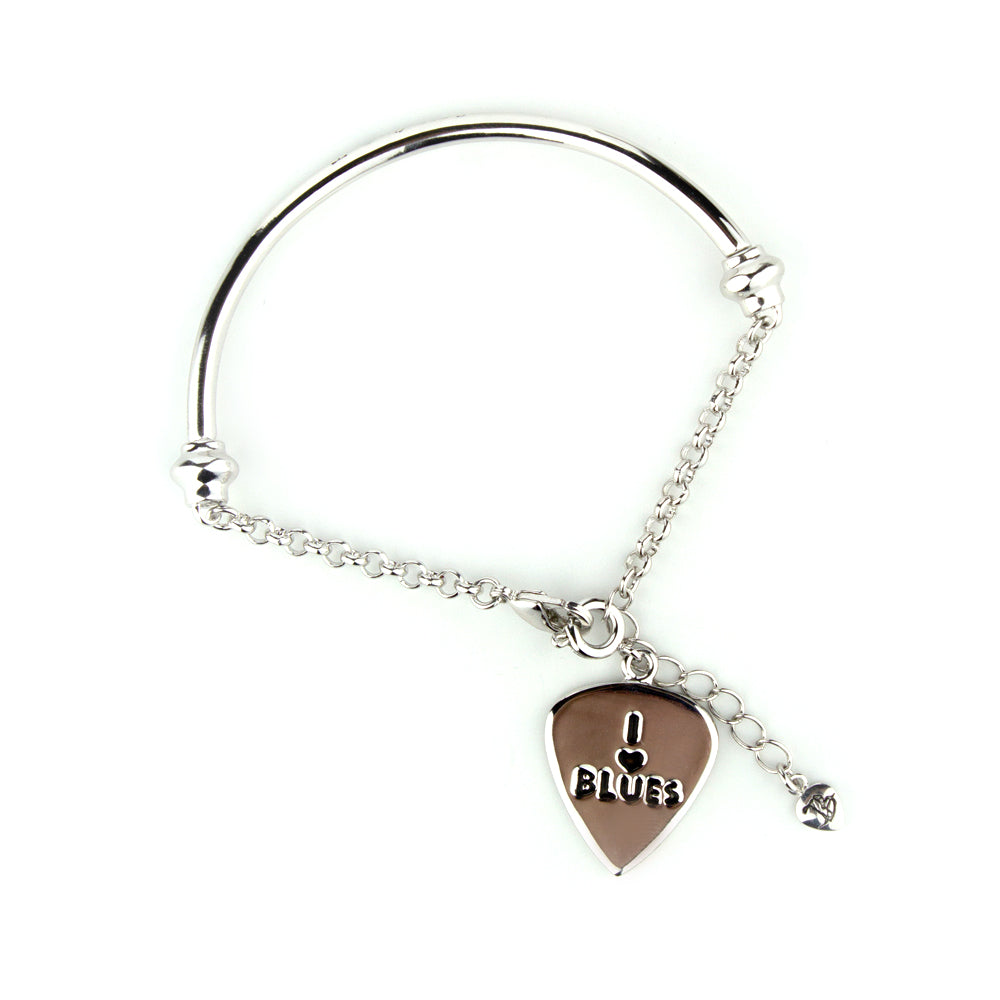 "I Love Blues" Adjustable Bracelet Bar & Chain - Silver