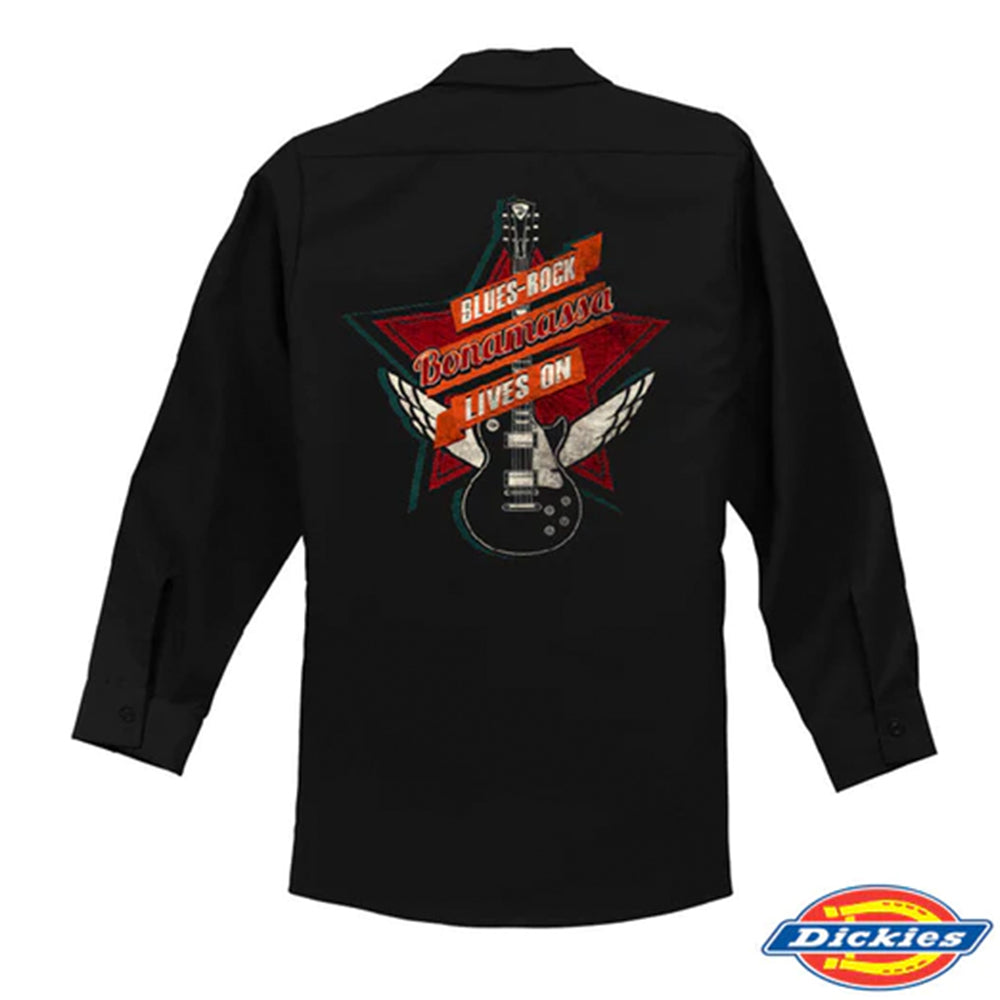 Blues Rock Lives On Dickies Long Sleeve Work Shirt (Men)